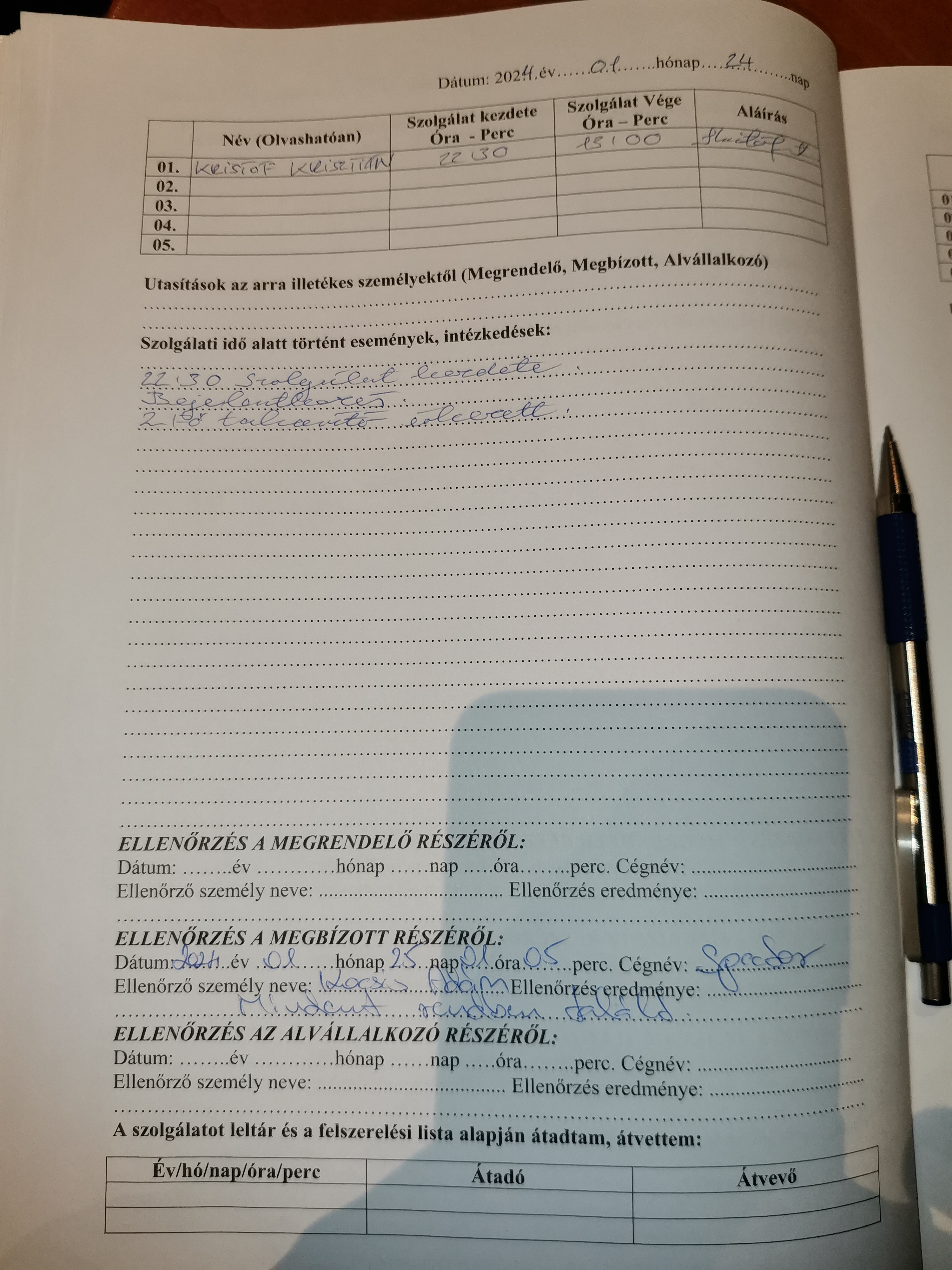 | Van-e az ellenőrzött személynek egyéb észrevétele, javaslata? | Nem |