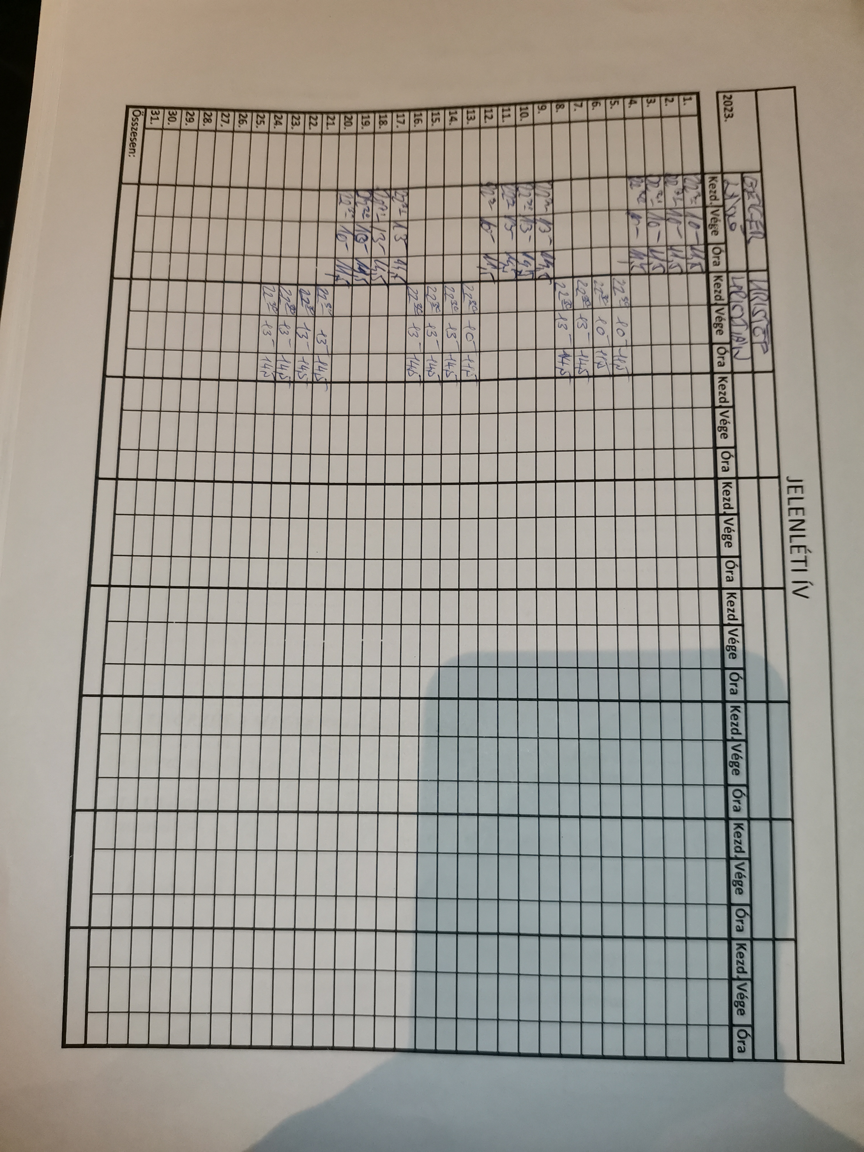 | A munkaidő nyilvántartás (jelenléti ív) vezetése | Megfelel |