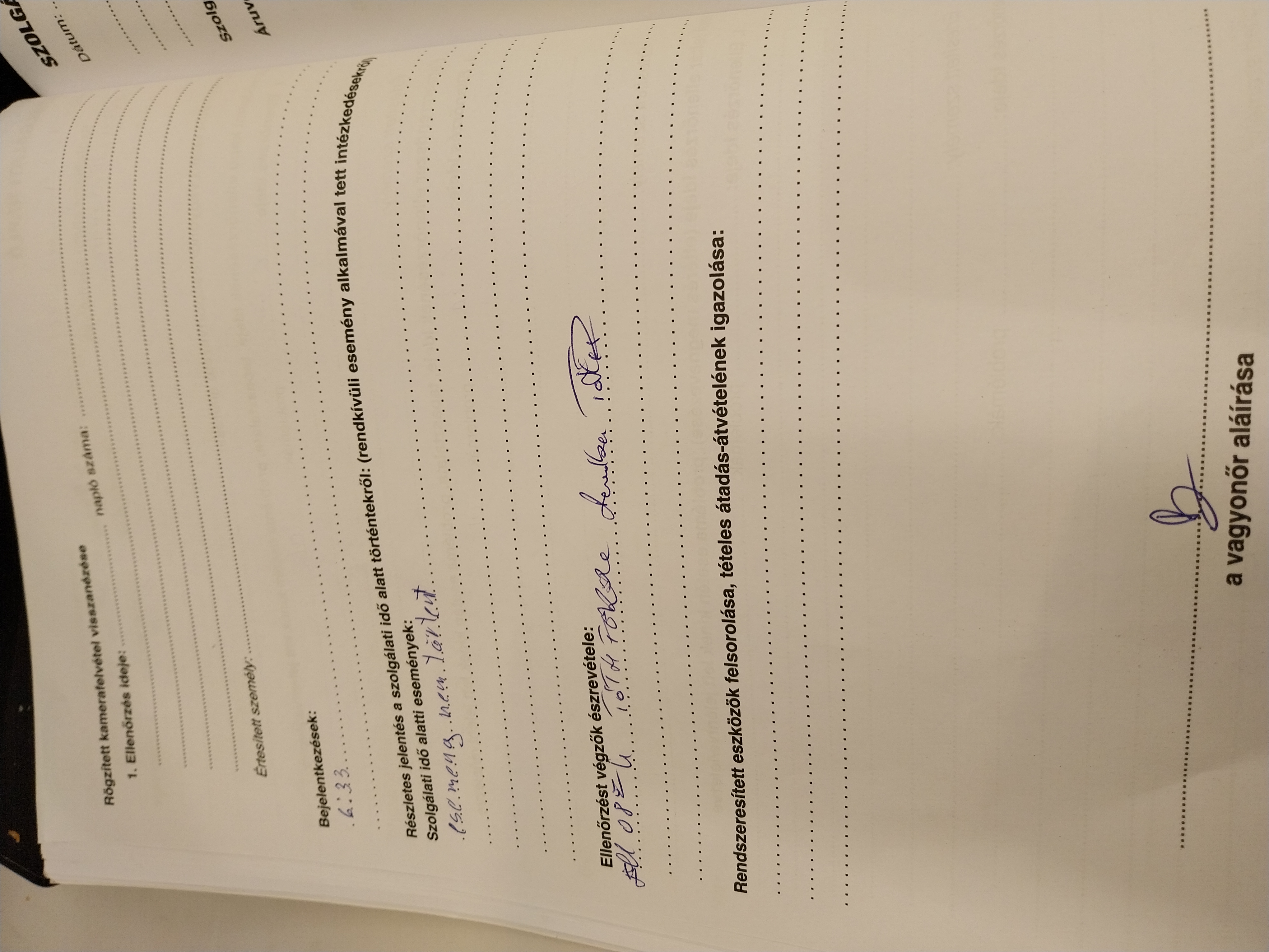 | Van-e az ellenőrzött személynek egyéb észrevétele, javaslata? | Nem |