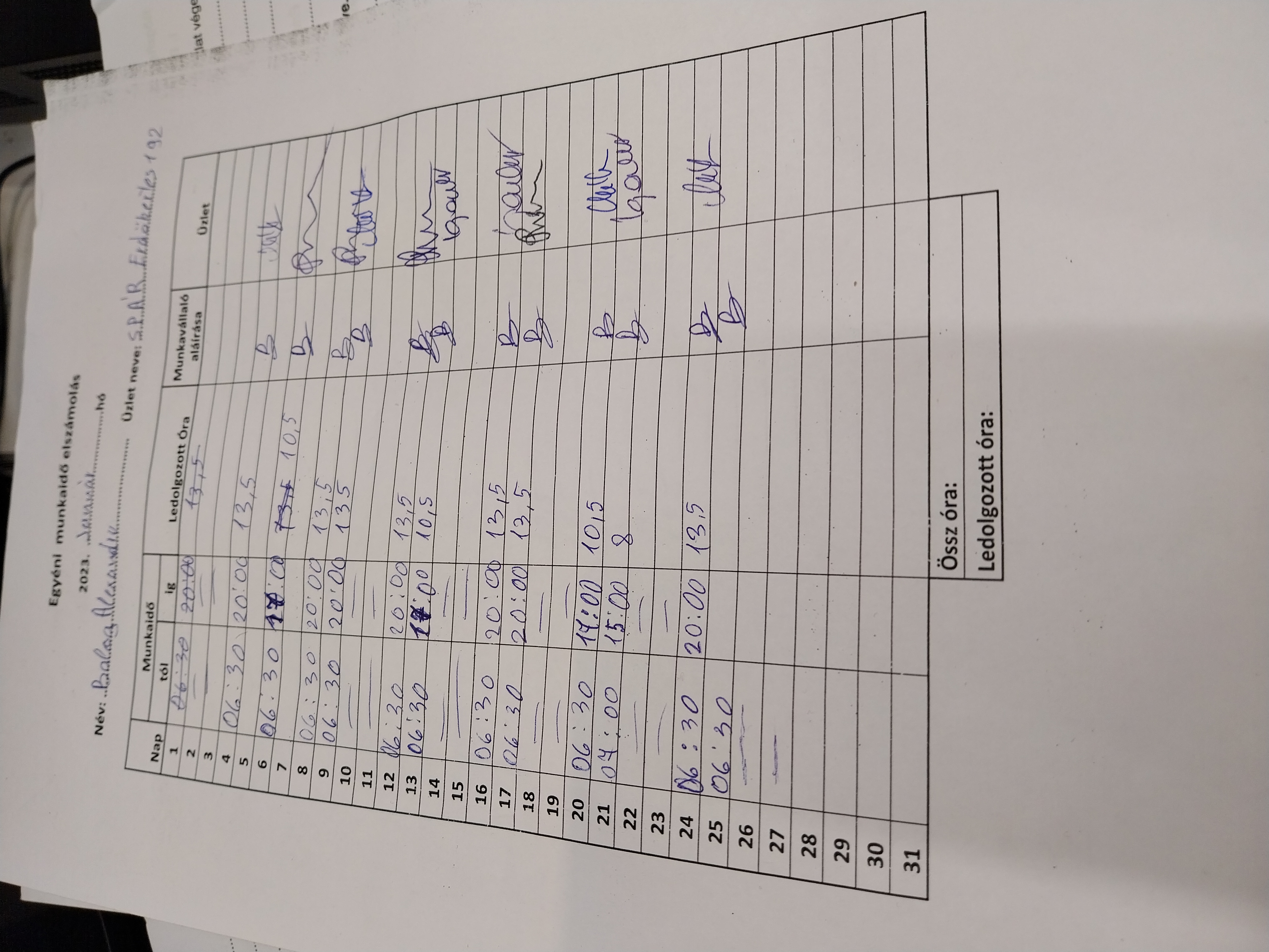 | Ellenőrzés helye | SPAR-SM 192 - Erdőkertes Béke u. 2. |