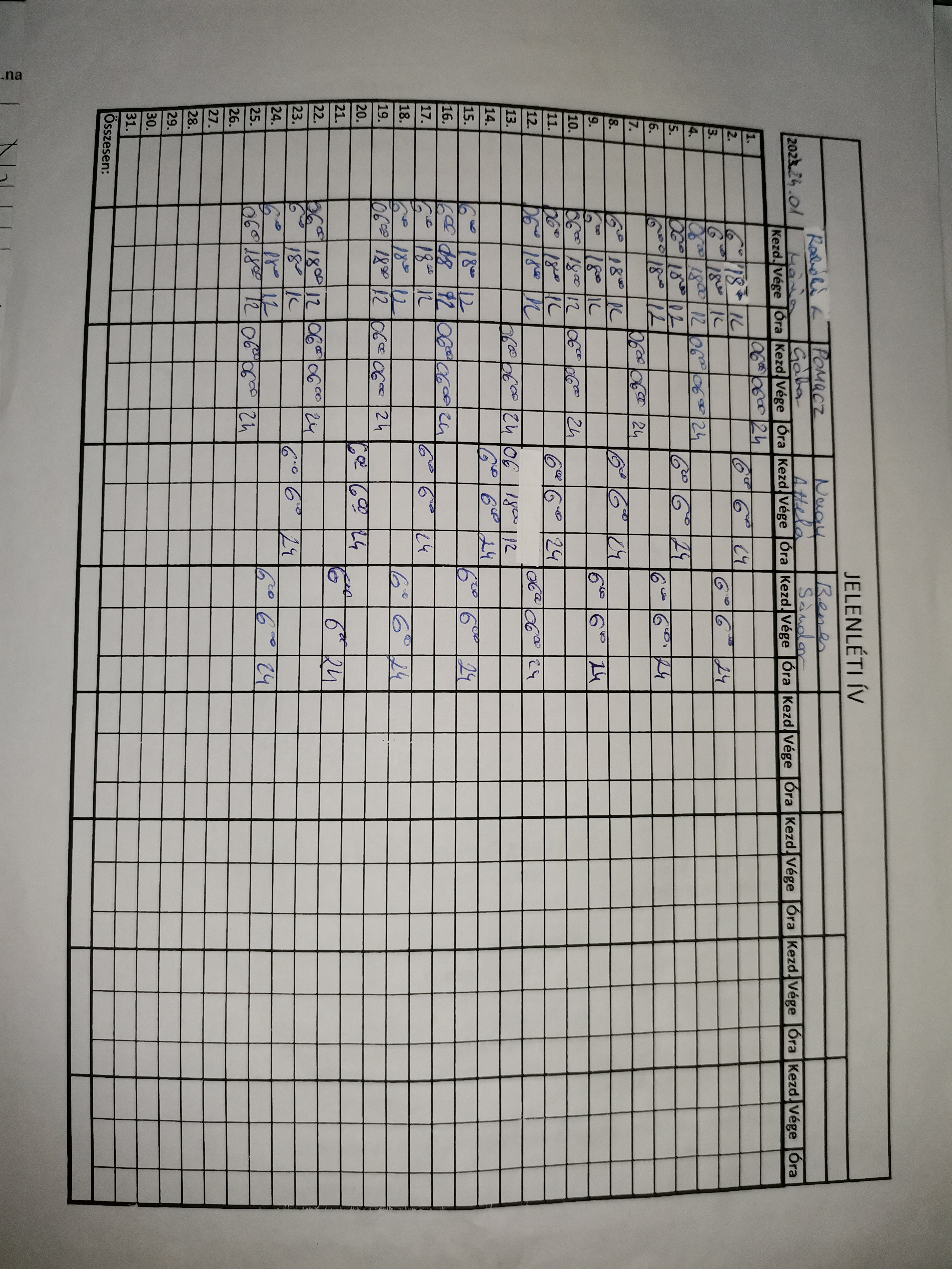 | A munkaidő nyilvántartás (jelenléti ív) vezetése | Megfelel |