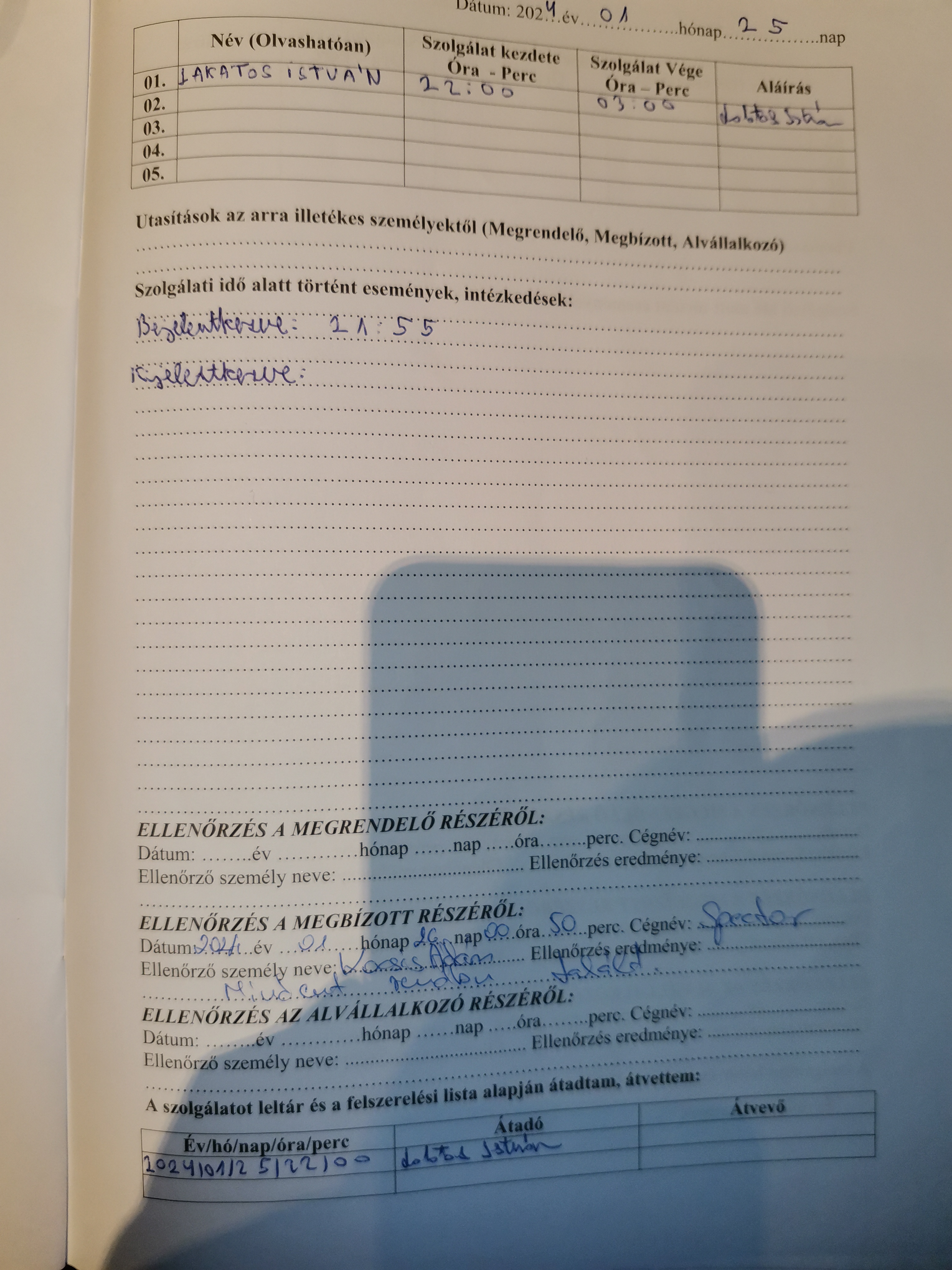 | Az ellenőrzött személy neve | Lakatos István |