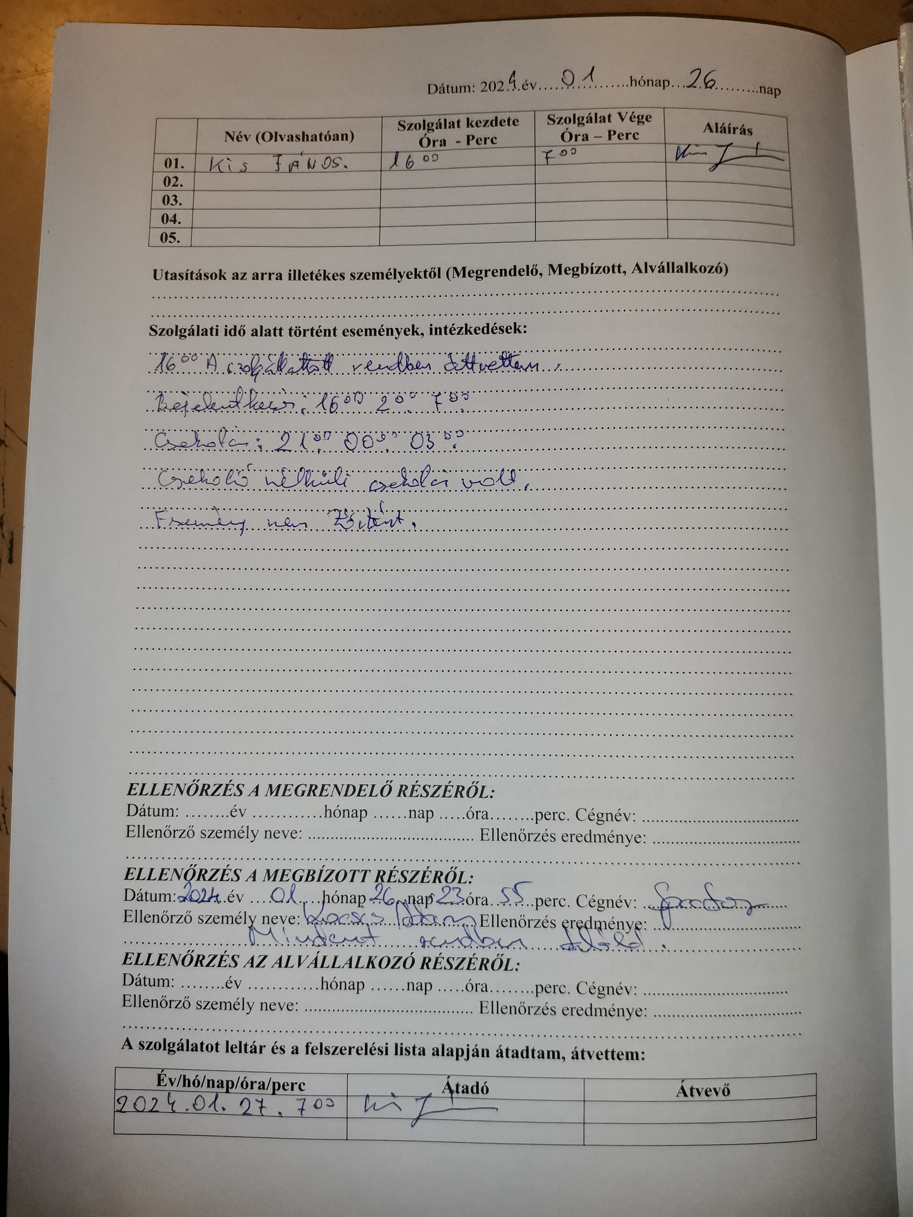 | Az őrhelyre kötelezően előírt oktatások igazolásának megléte | Nem releváns |