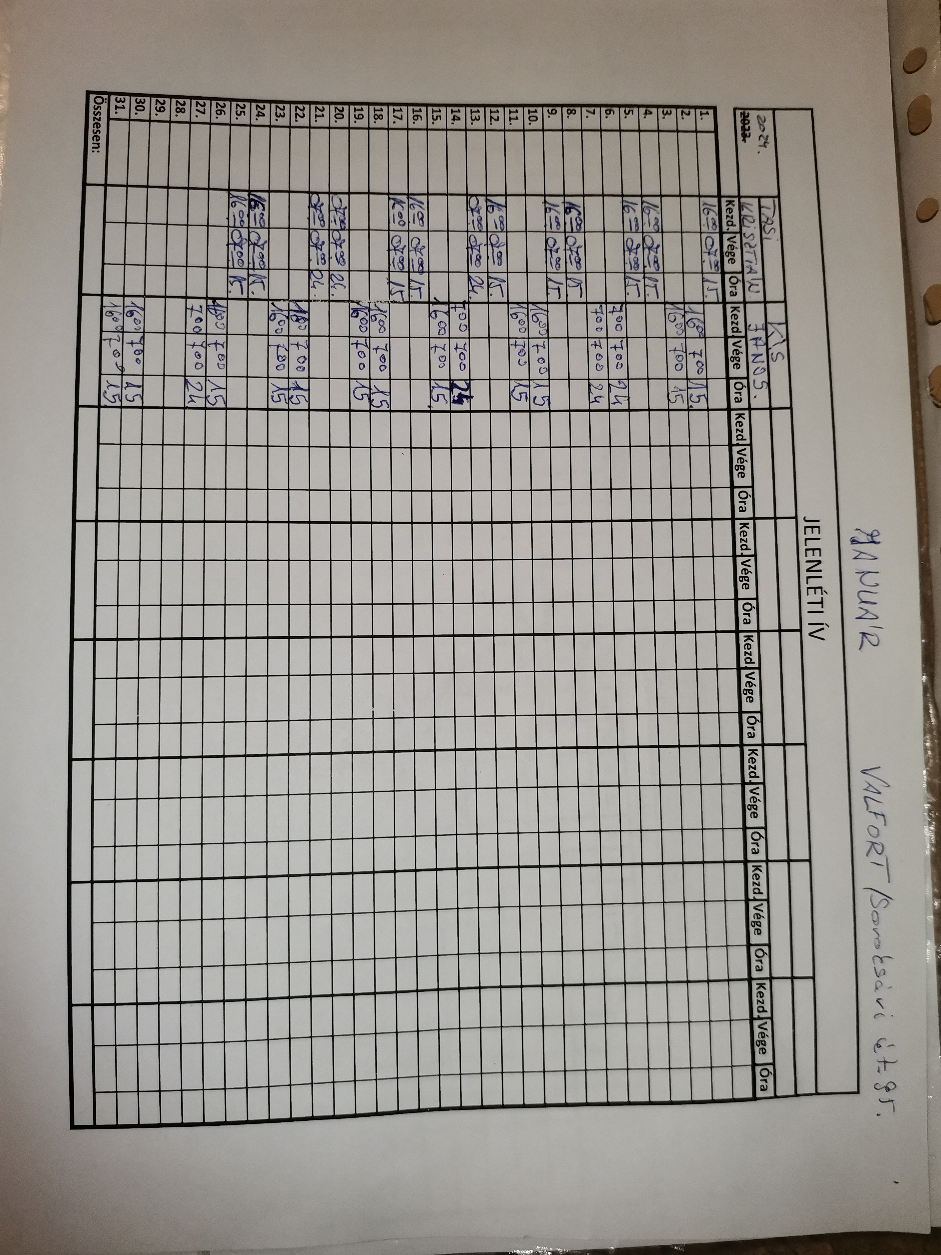 | A munkaidő nyilvántartás (jelenléti ív) vezetése | További intézkedést igénylő hiba |