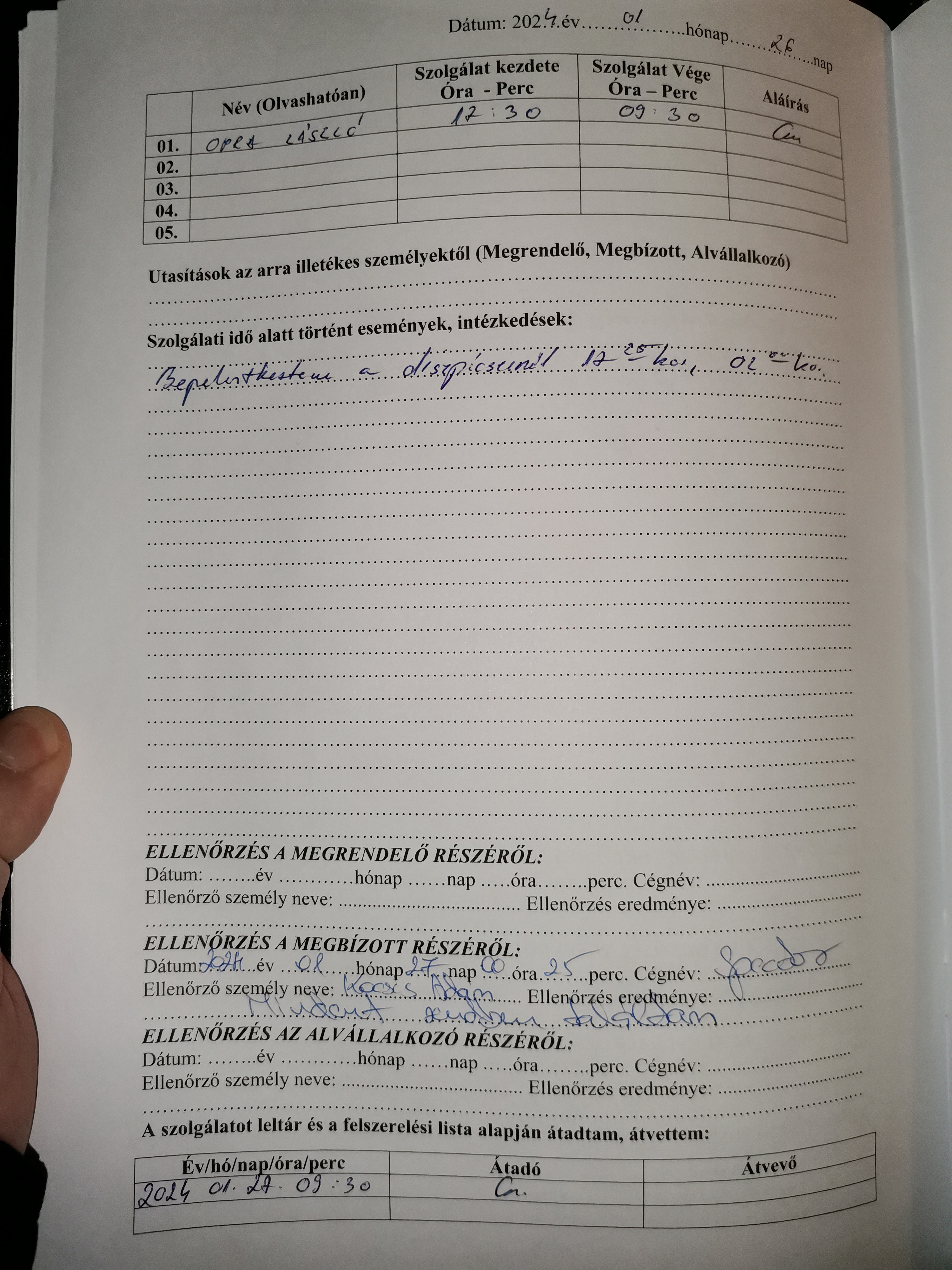 | Az őrhelyre kötelezően előírt oktatások igazolásának megléte | Nem releváns |