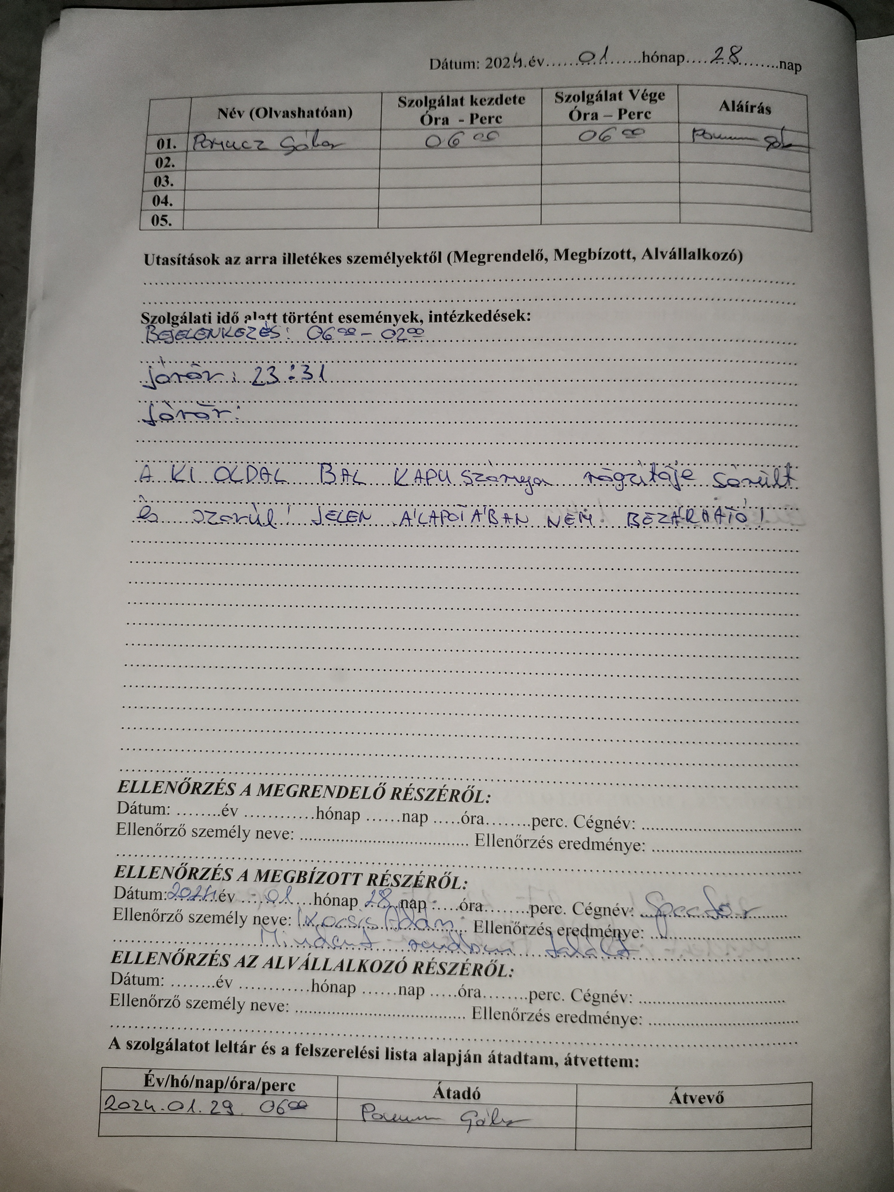 | Az őrhelyre kötelezően előírt oktatások igazolásának megléte | Megfelel |