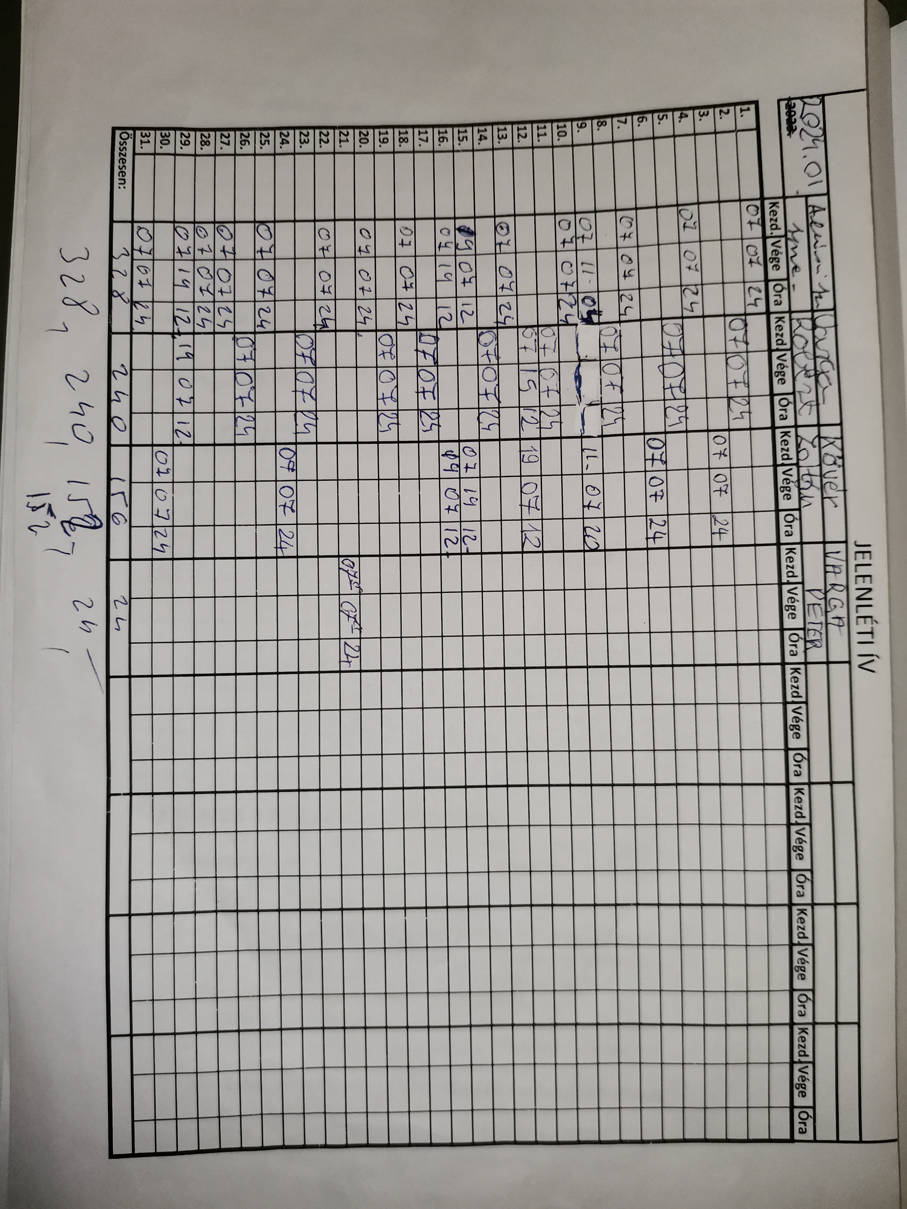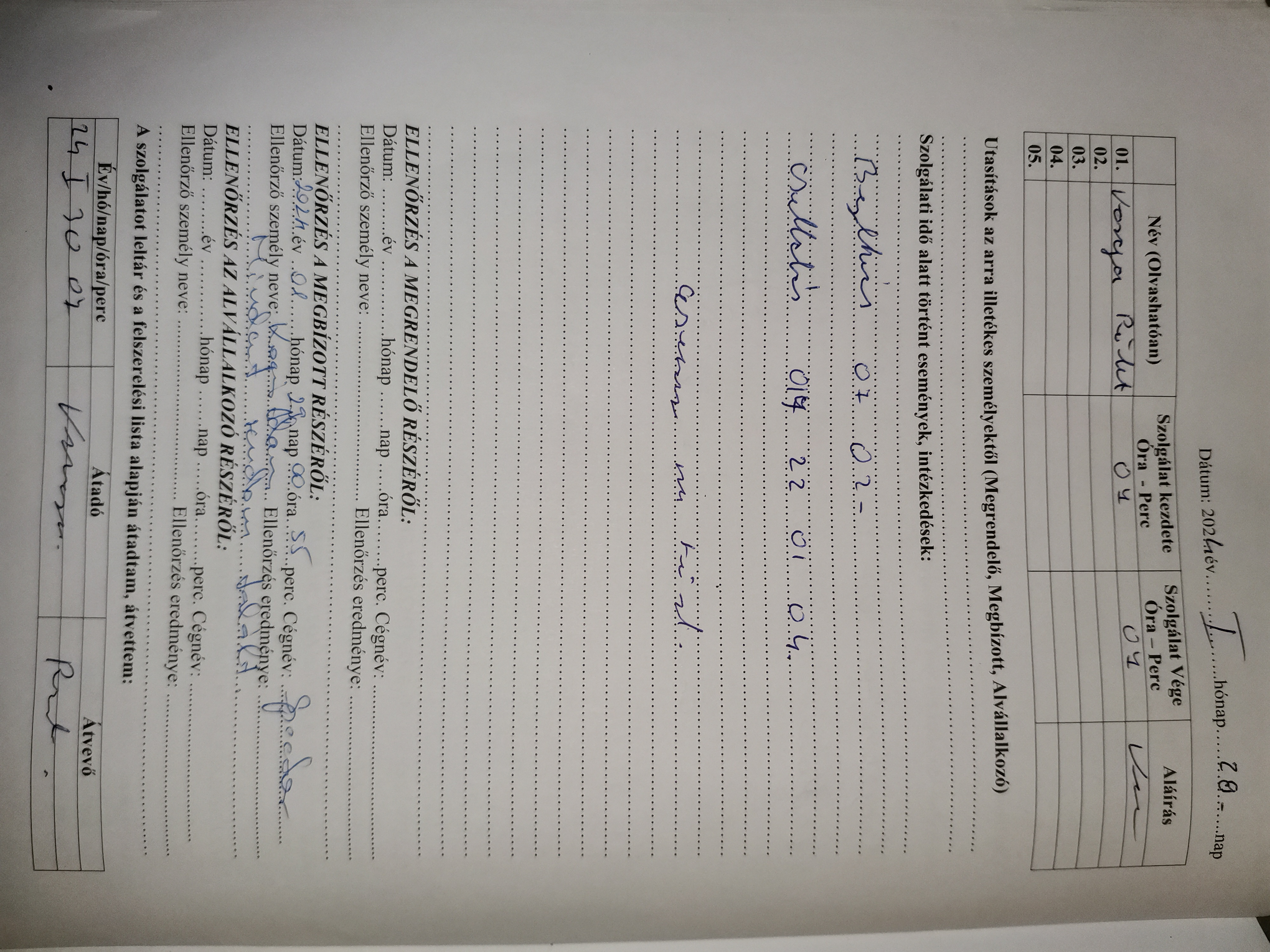 | Szolgálati okmányok nemmegfelelősége | Hó végi zárás miatt előre kitöltött jelenléti ív. |