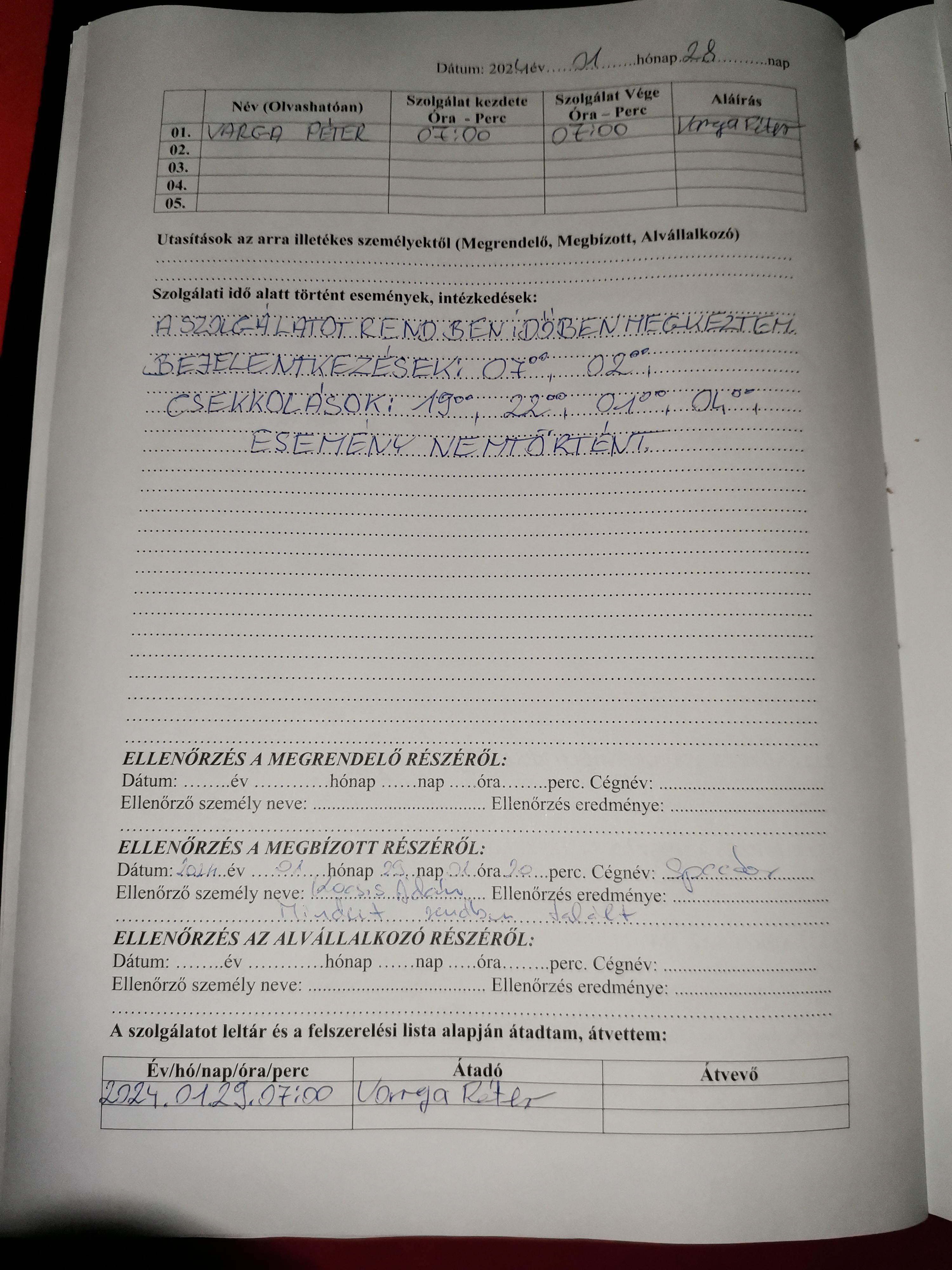 | Az őrhelyre kötelezően előírt oktatások igazolásának megléte | Megfelel |