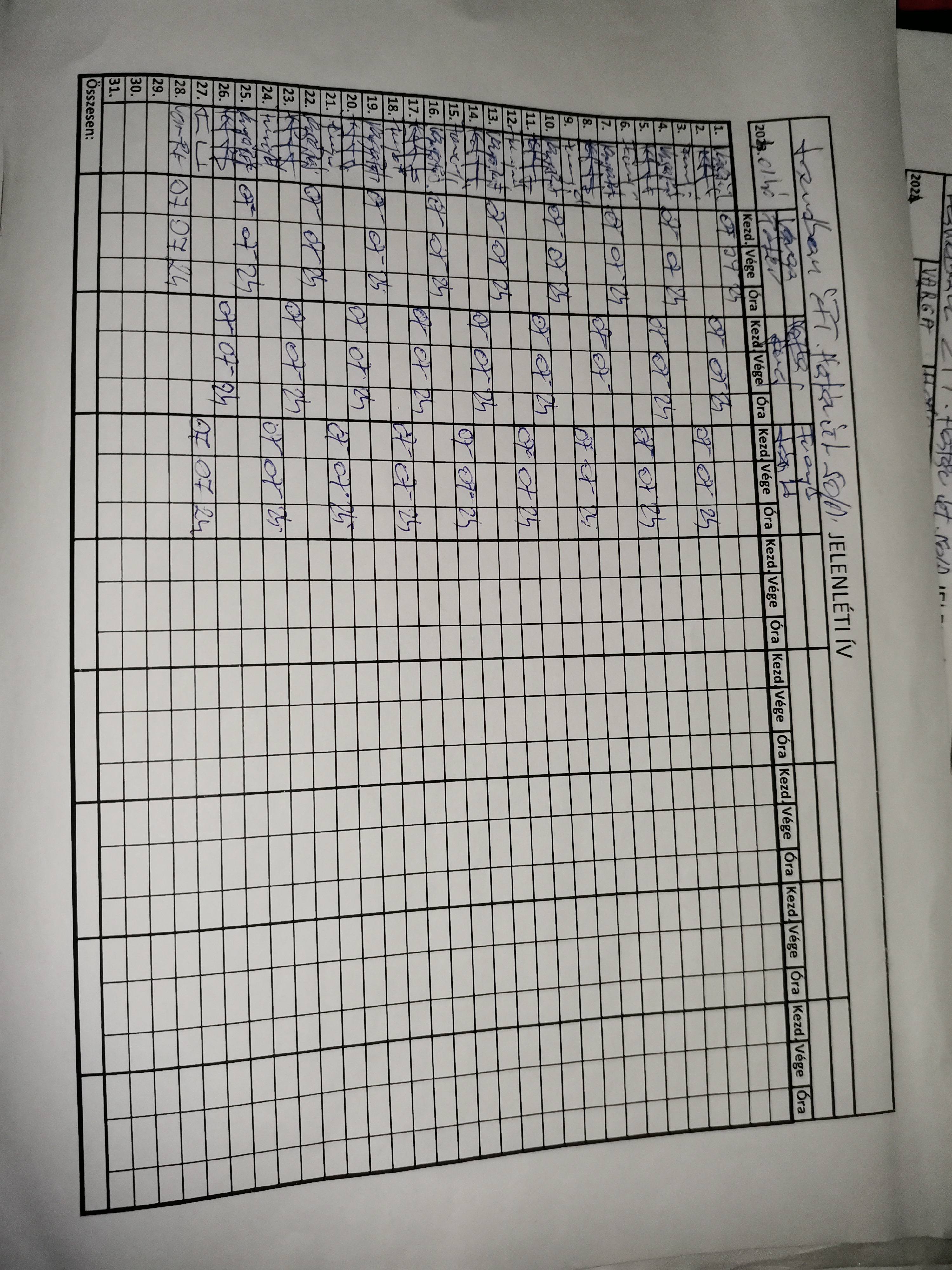 | A munkaidő nyilvántartás (jelenléti ív) vezetése | Megfelel |