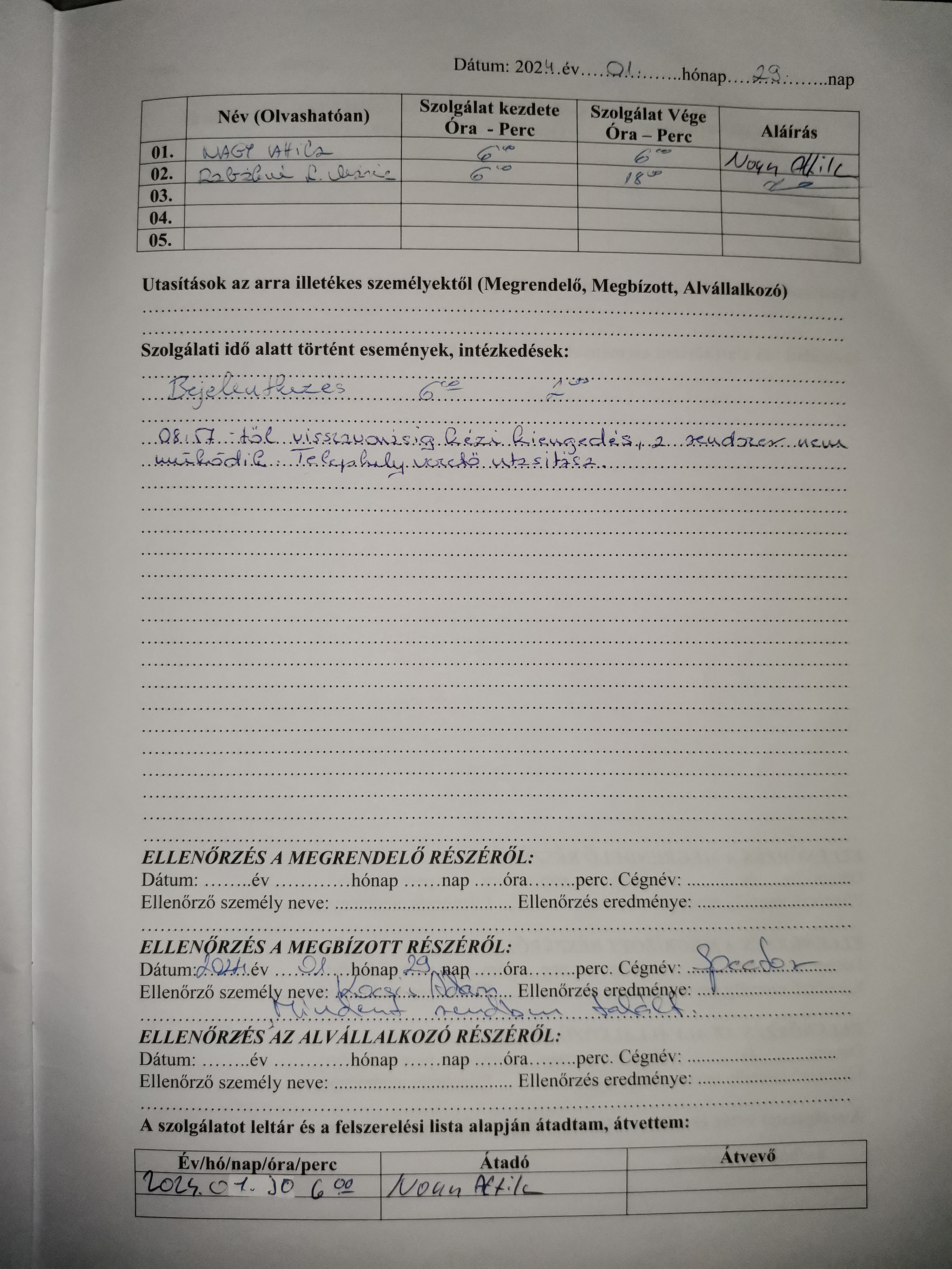 | Az őrhelyre kötelezően előírt oktatások igazolásának megléte | Nem releváns |