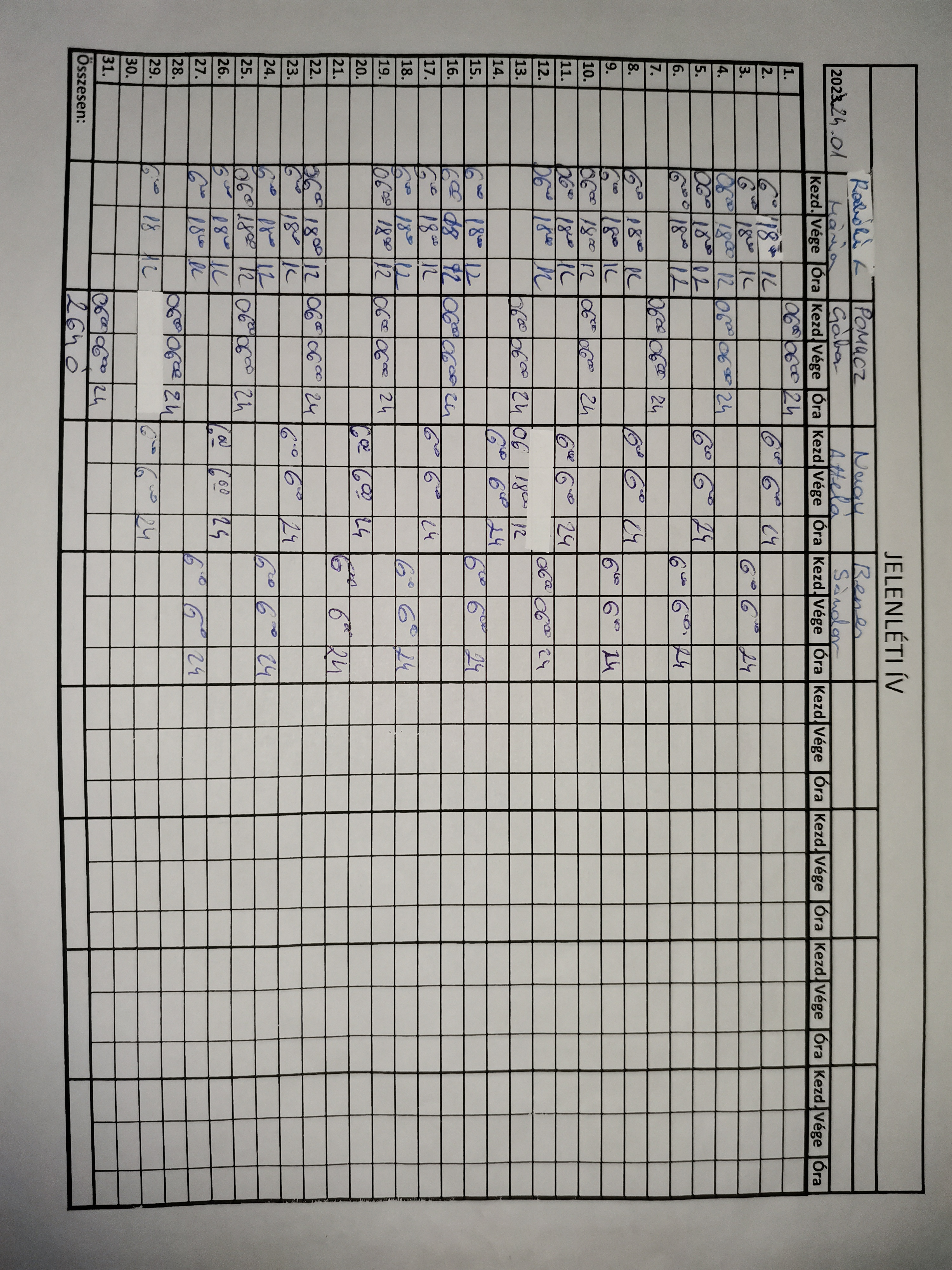 | A munkaidő nyilvántartás (jelenléti ív) vezetése | Megfelel |
