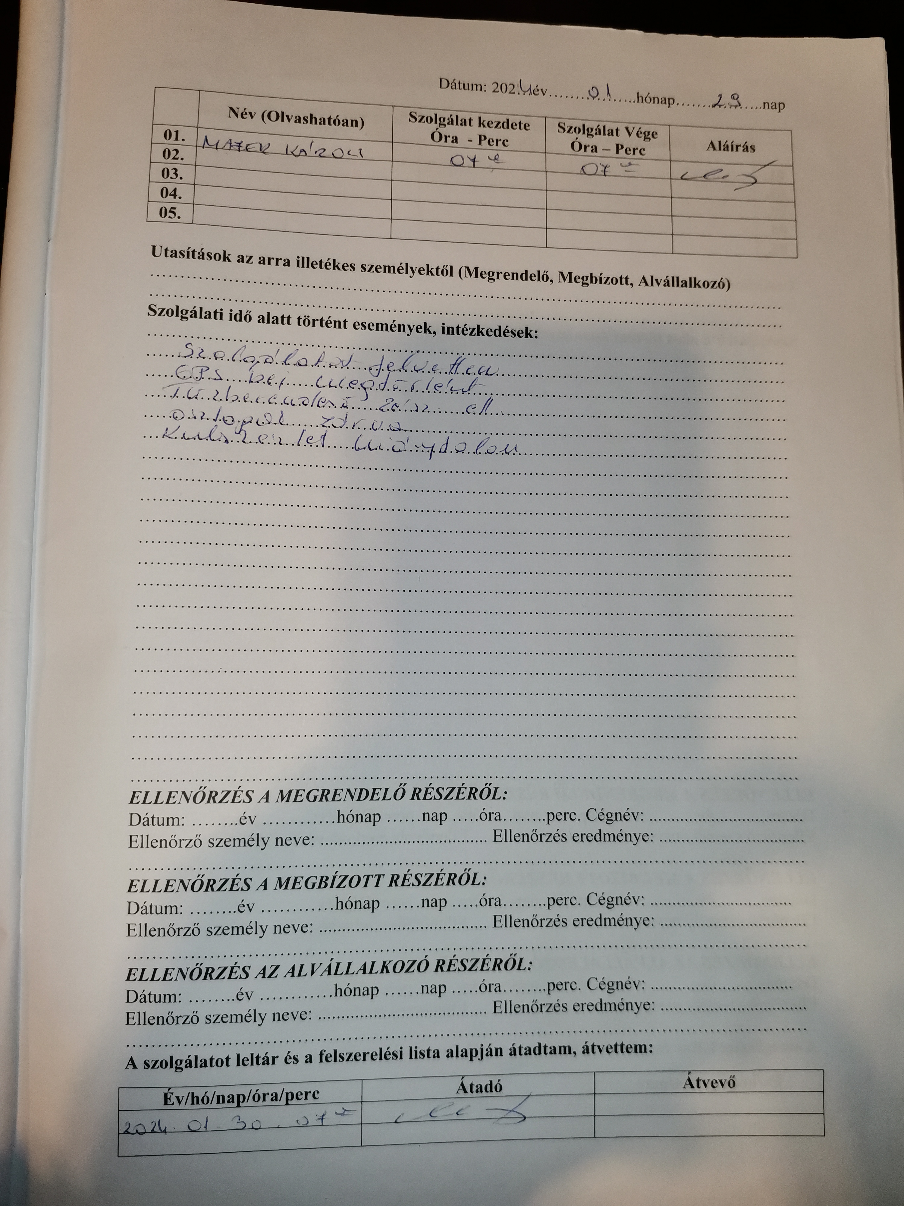 | Van-e az ellenőrzött személynek egyéb észrevétele, javaslata? | Nem |