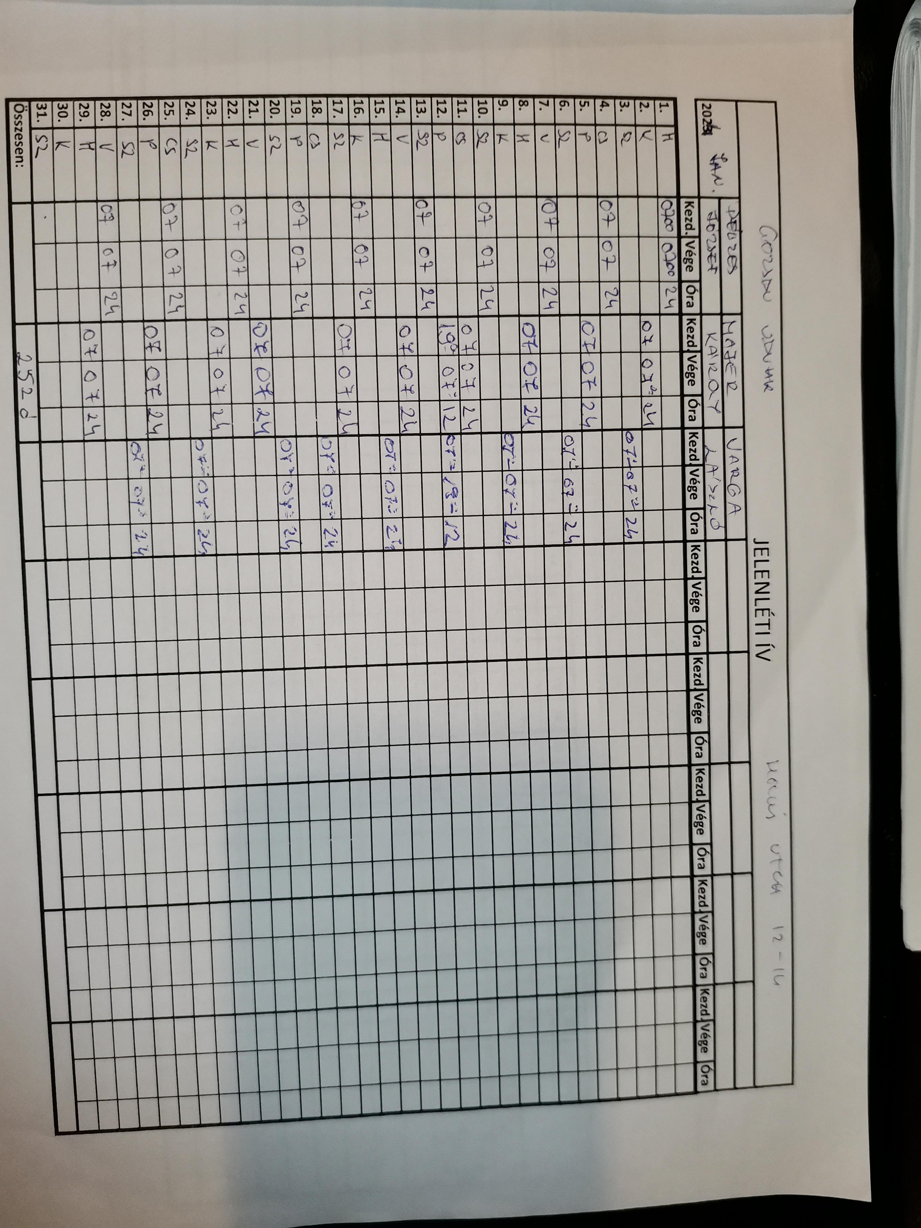 | A munkaidő nyilvántartás (jelenléti ív) vezetése | Megfelel |