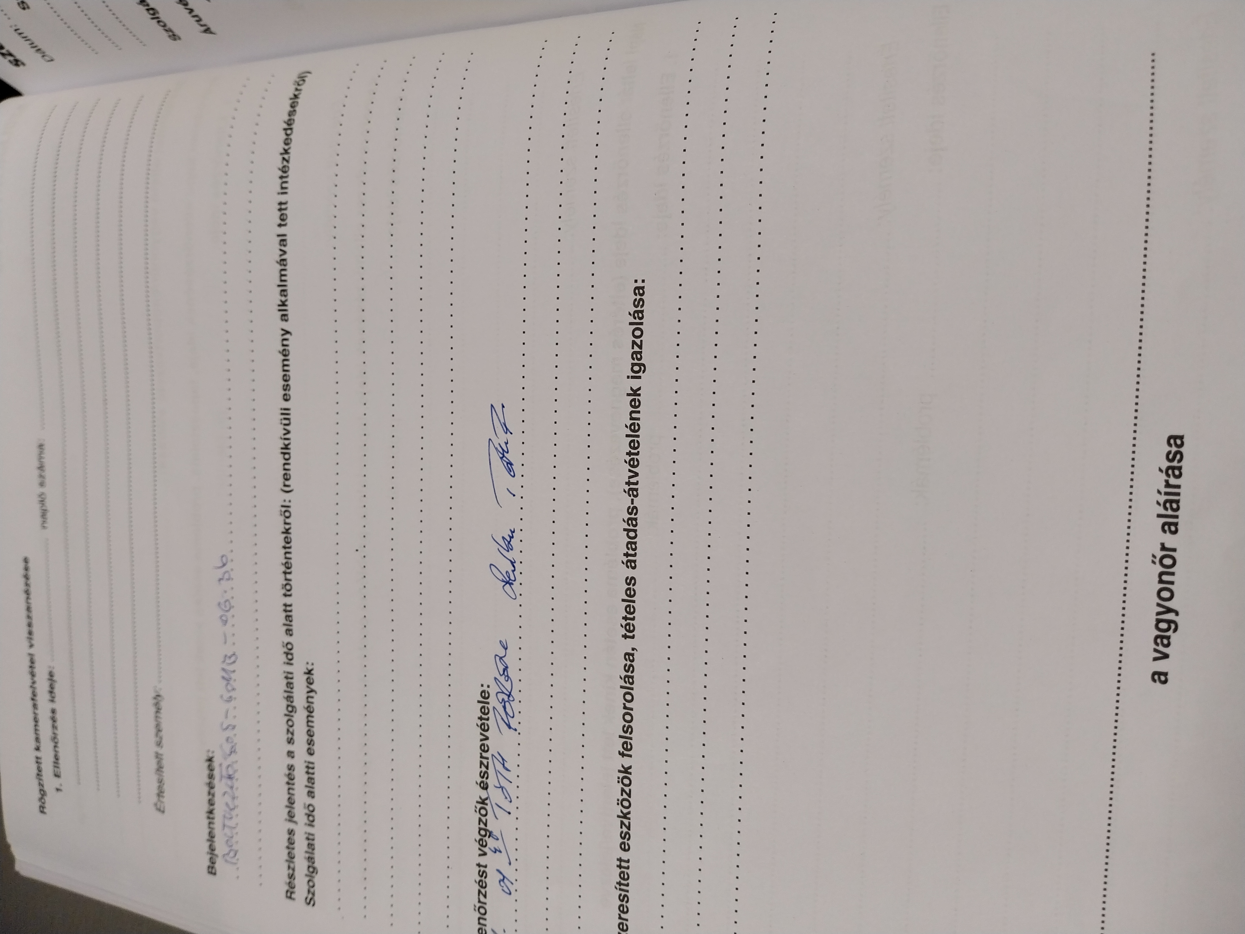 | Az őrzési helyre kiadott munkaeszközök megléte | Megfelel |