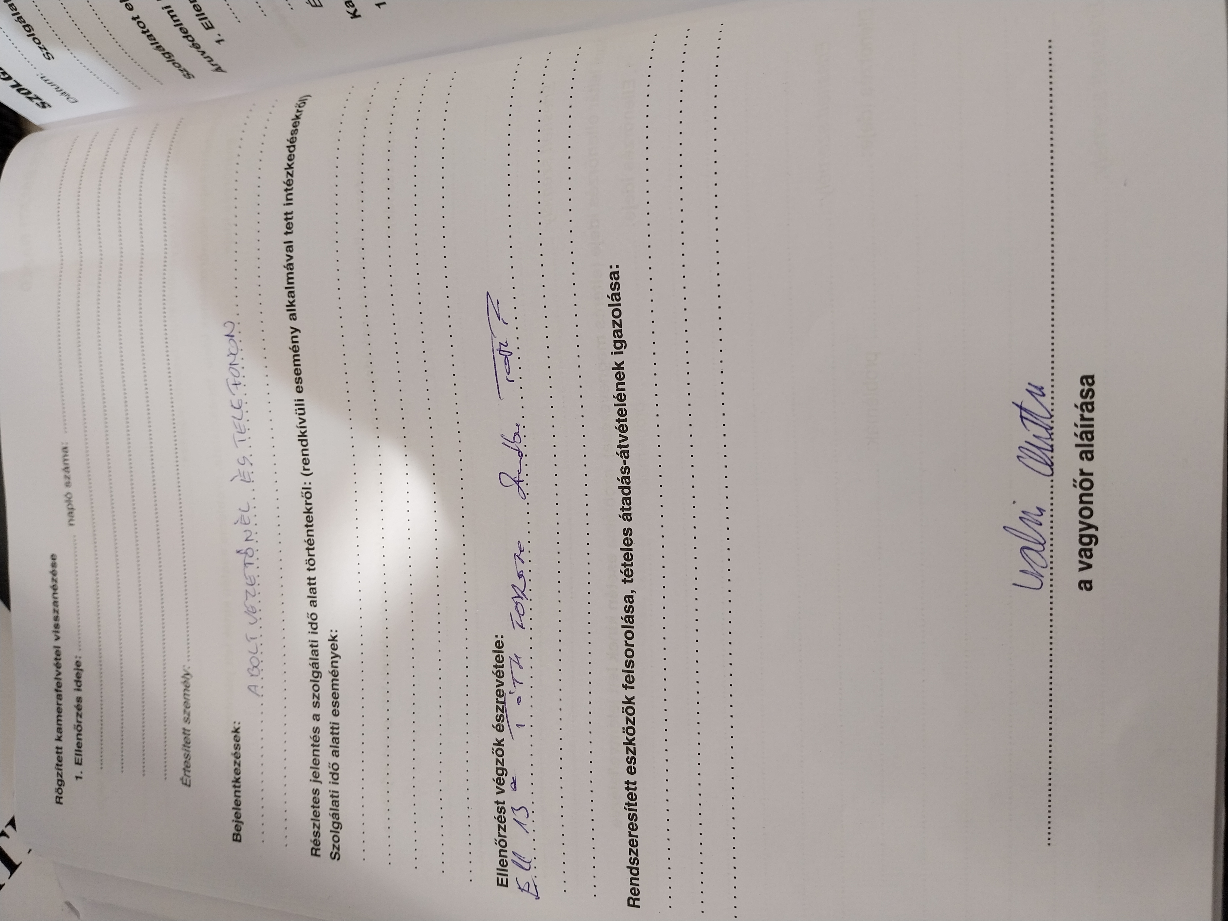 | Az őrzési helyre kiadott munkaeszközök megléte | Megfelel |