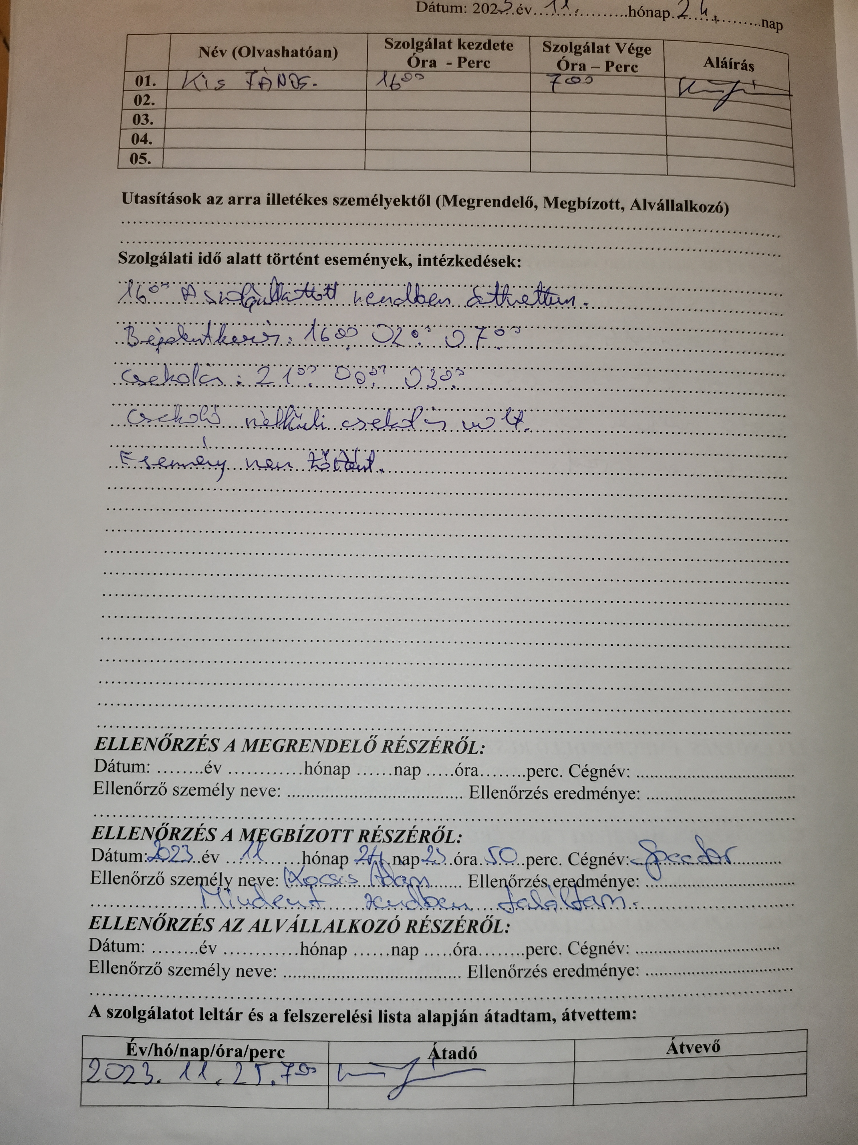 | Az őrhelyre kötelezően előírt oktatások igazolásának megléte | Nem releváns |