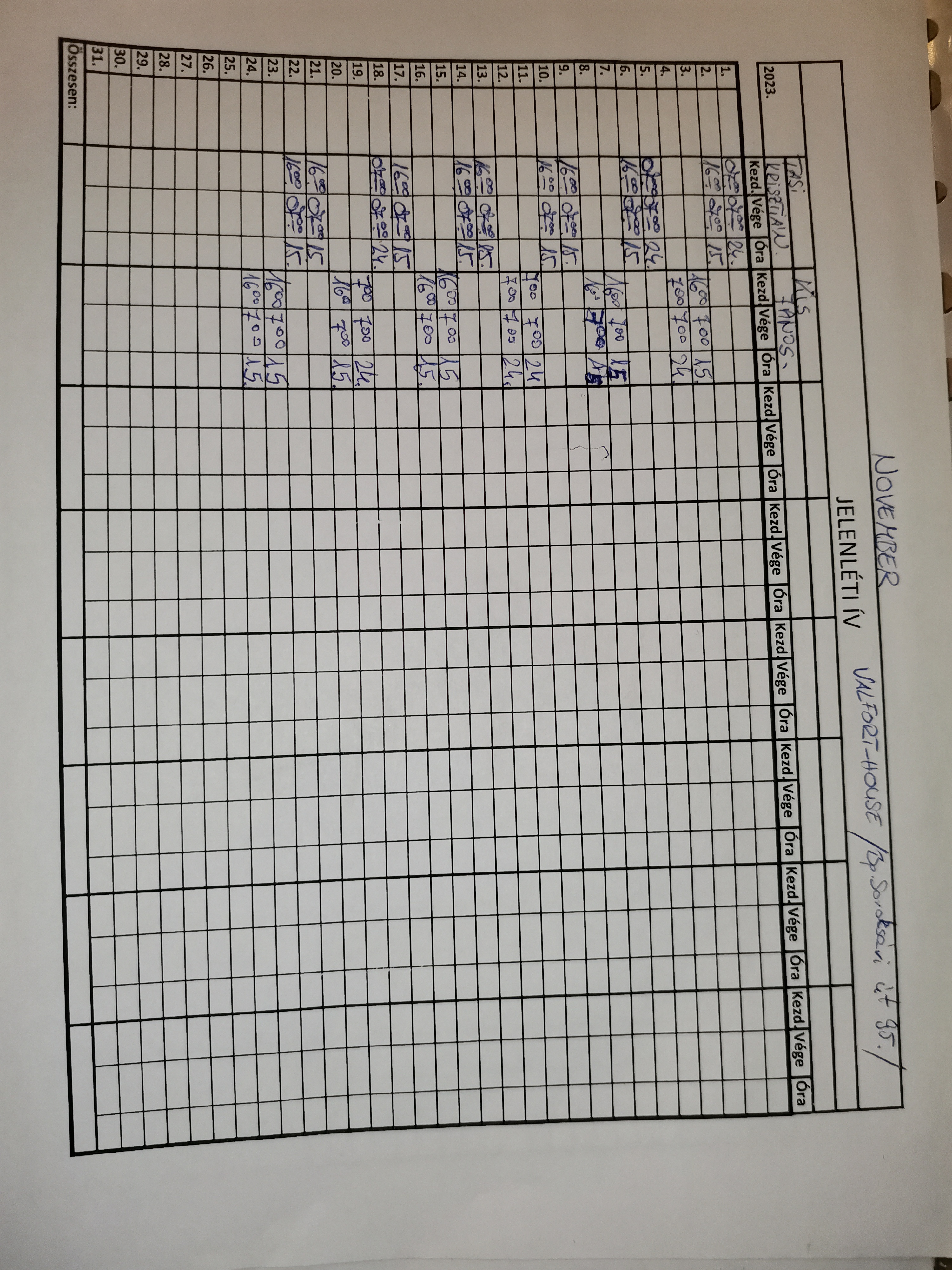 | A munkaidő nyilvántartás (jelenléti ív) vezetése | Megfelel |