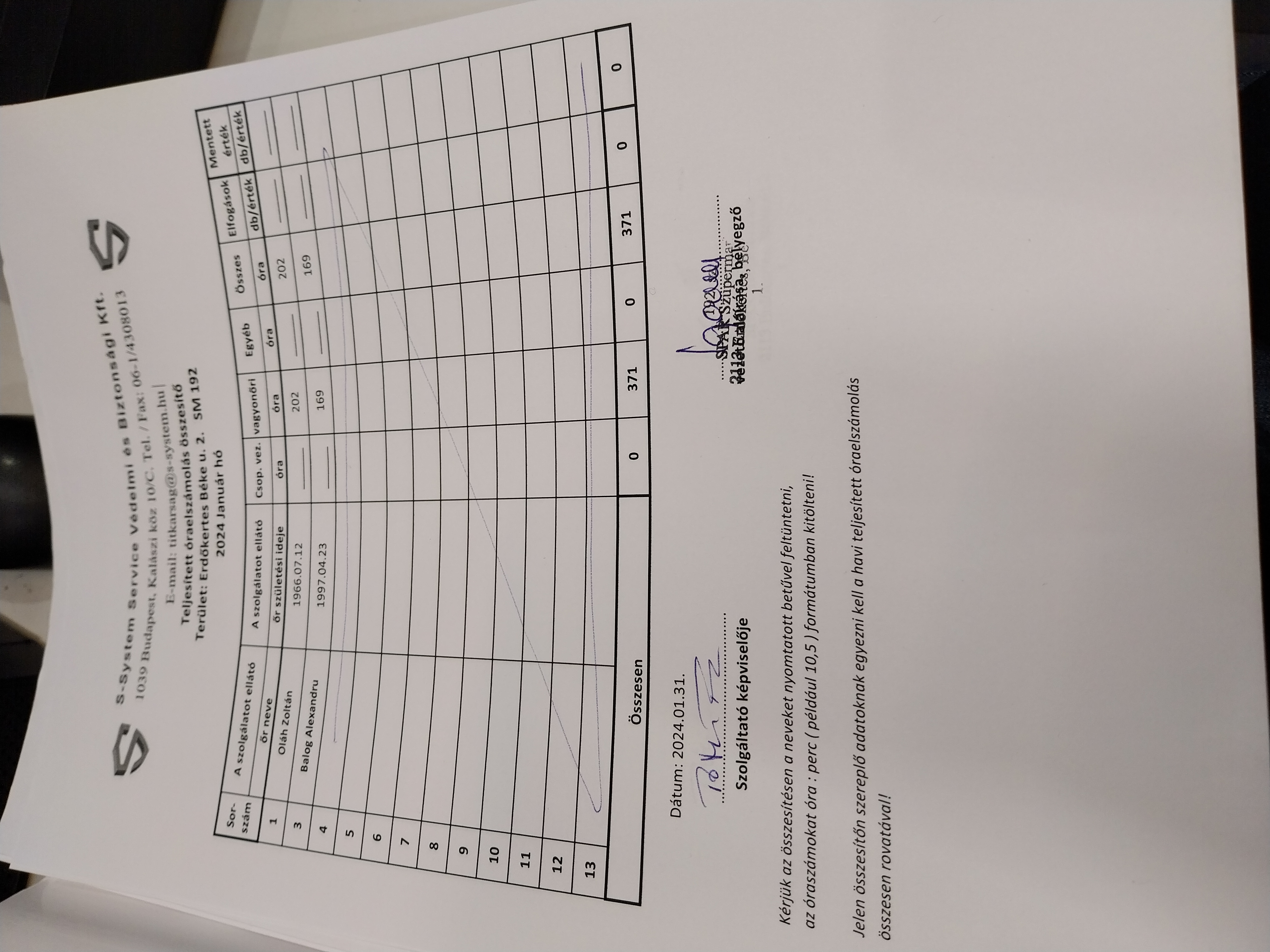| Az őrzési helyre kiadott munkaeszközök megléte | Megfelel |