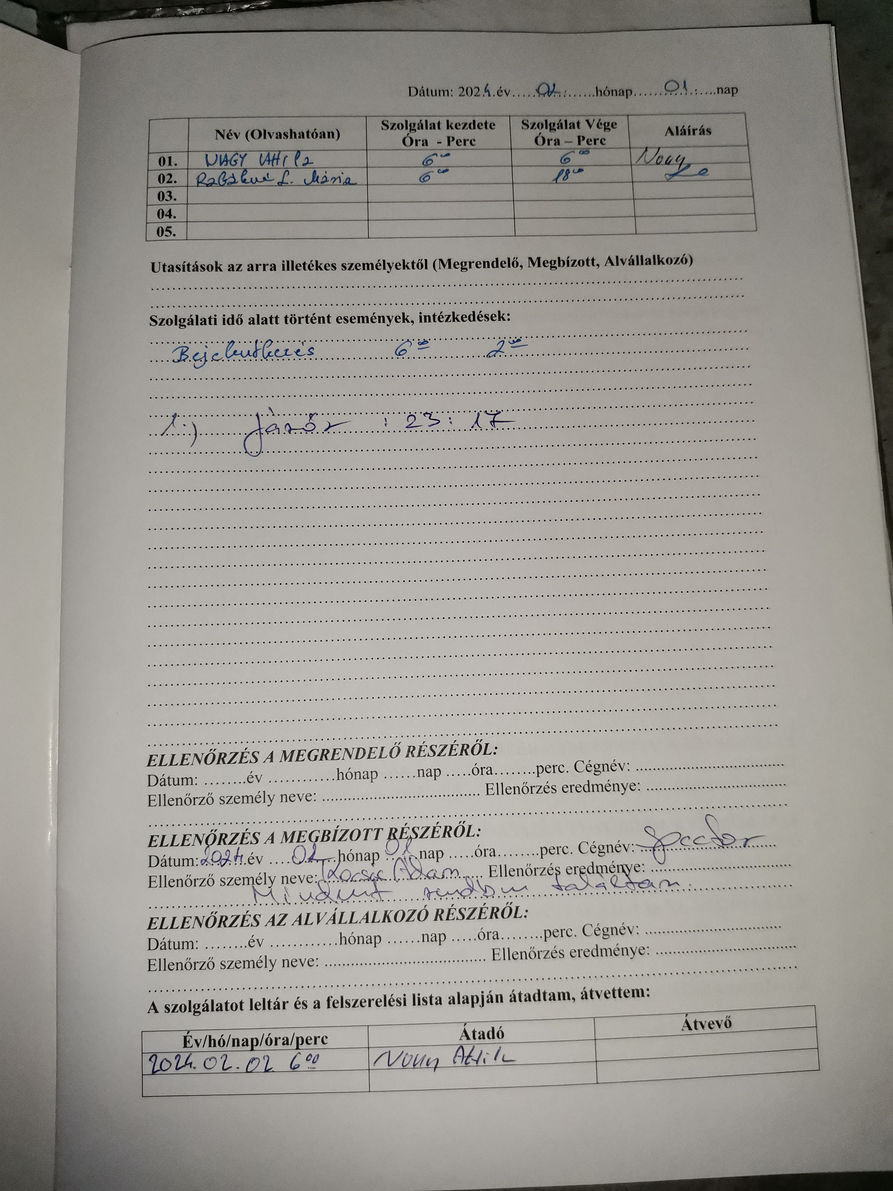 | Az őrhelyre kötelezően előírt oktatások igazolásának megléte | Nem releváns |