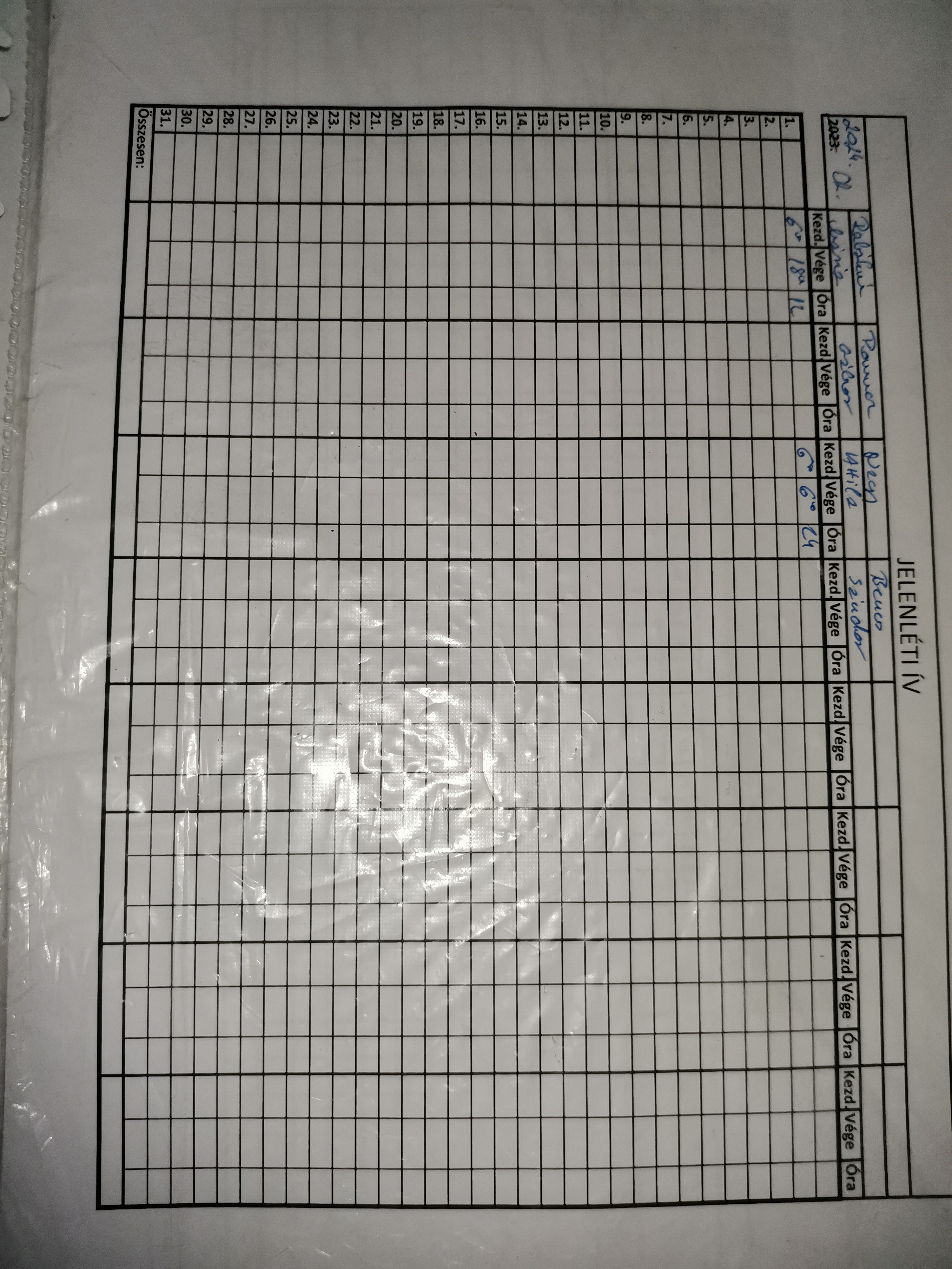 | A munkaidő nyilvántartás (jelenléti ív) vezetése | Megfelel |
