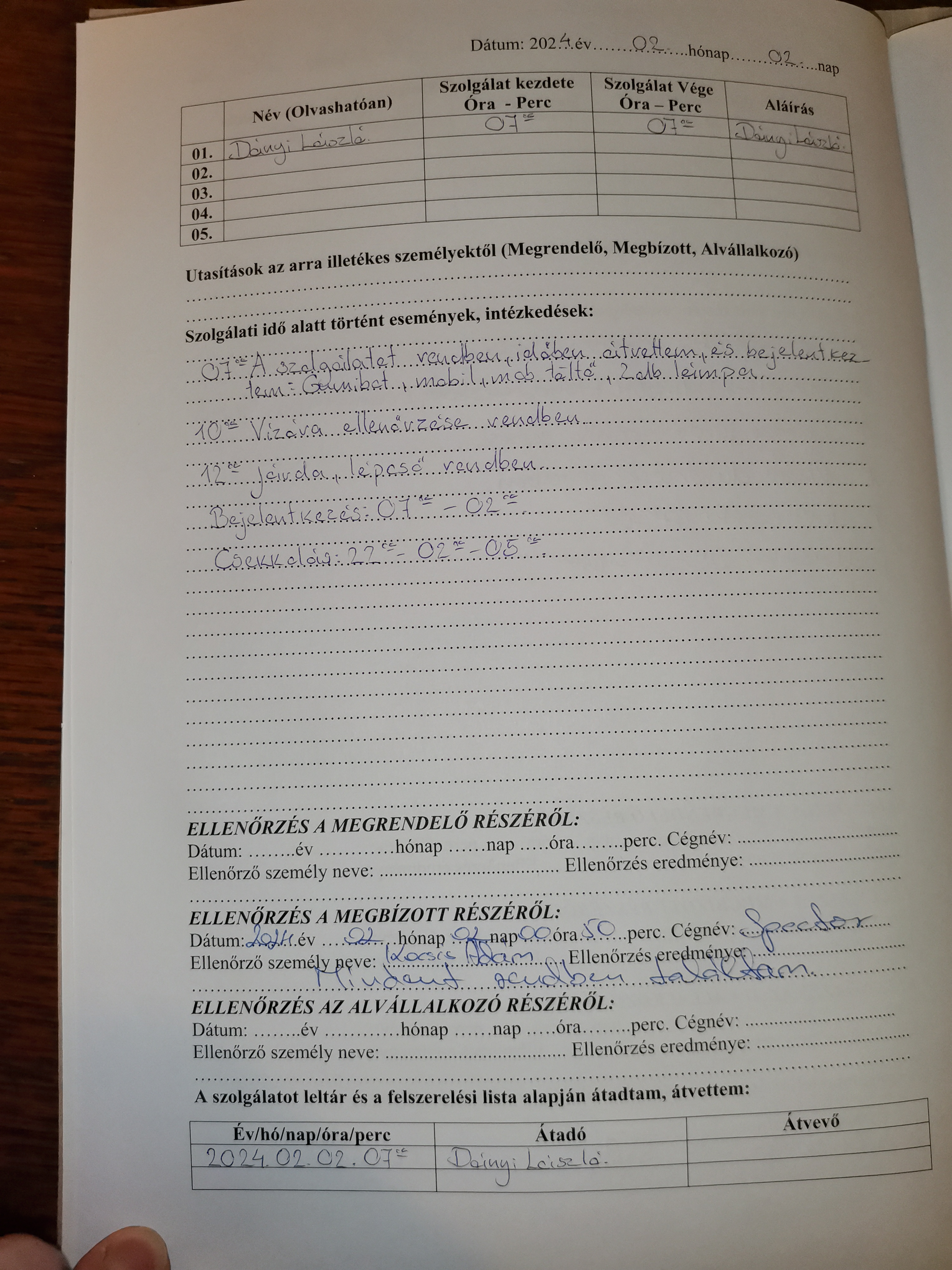 | Az őrzési helyre kiadott munkaeszközök megléte | Megfelel |