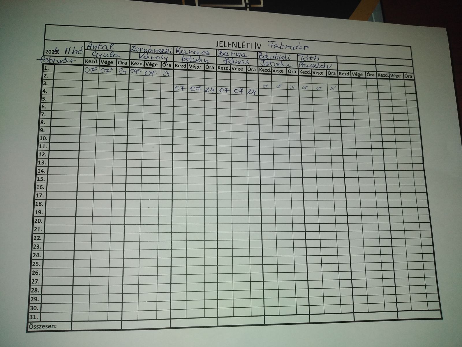 | A munkaidő nyilvántartás (jelenléti ív) vezetése | Megfelel |