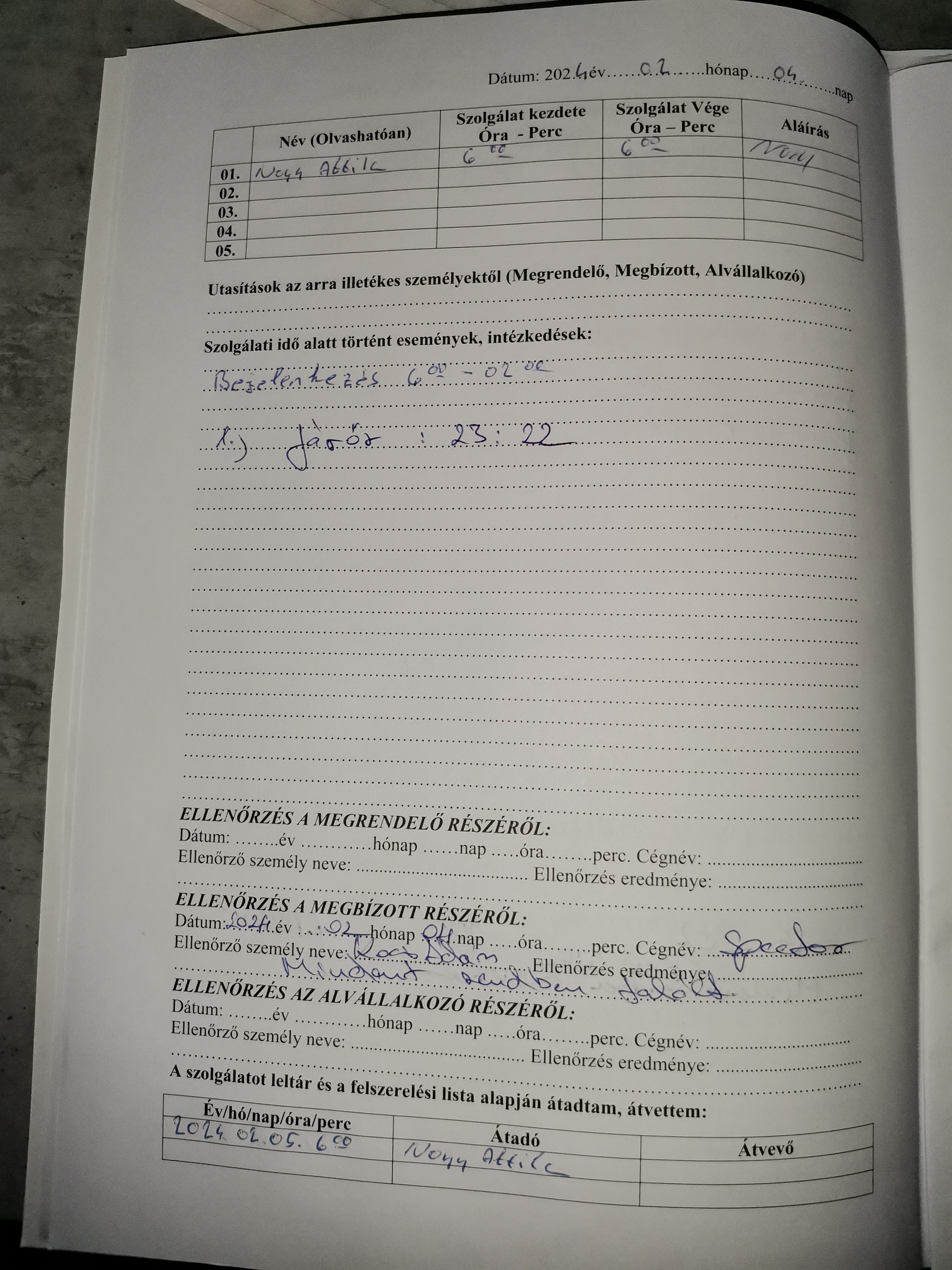 | Az őrhelyre kötelezően előírt oktatások igazolásának megléte | Megfelel |