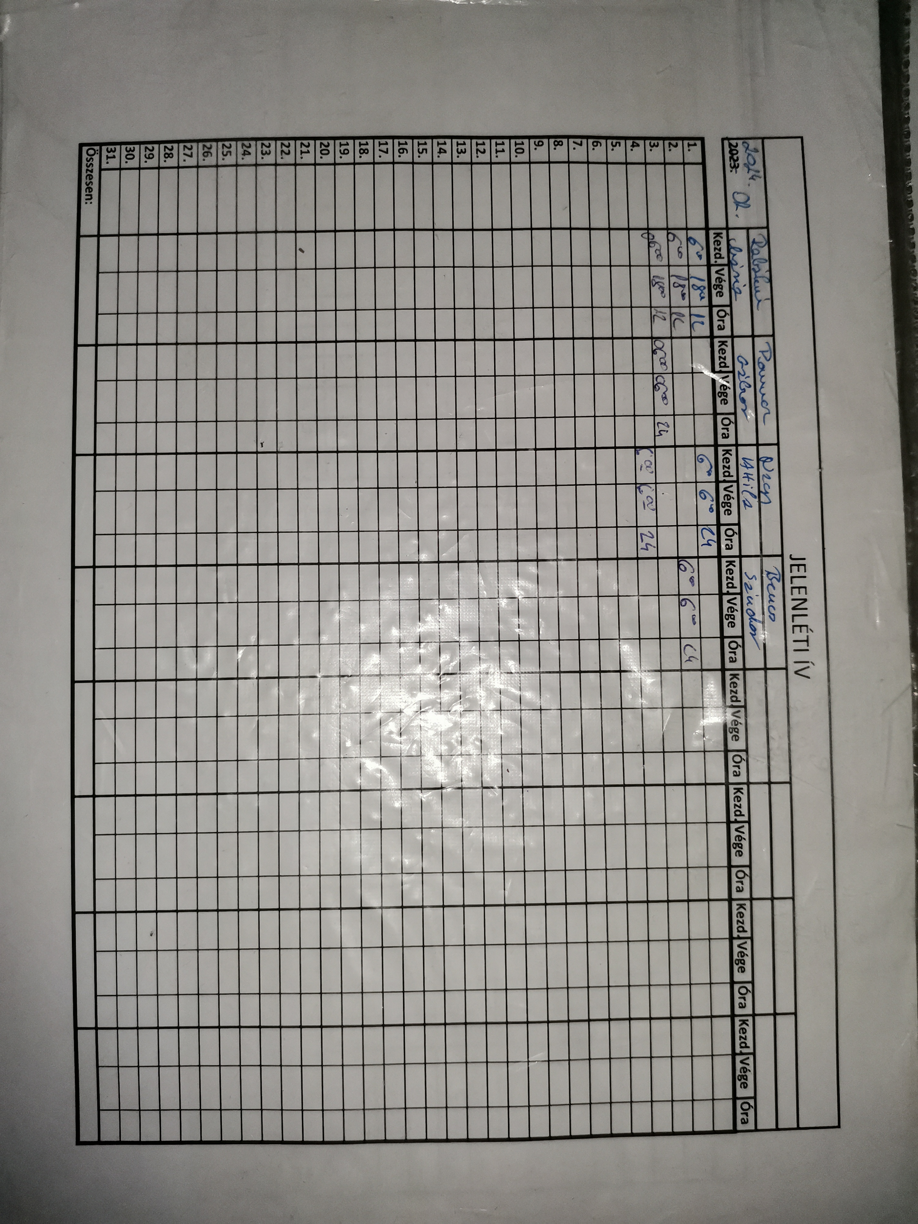 | A munkaidő nyilvántartás (jelenléti ív) vezetése | Megfelel |