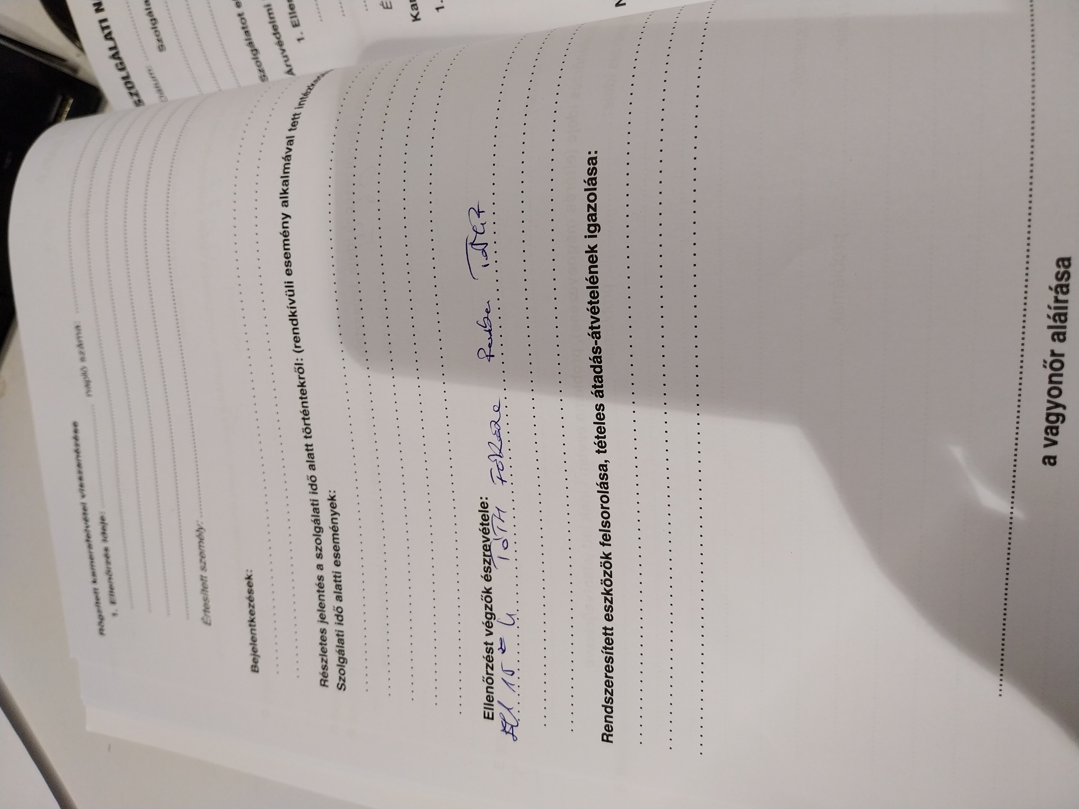 | Az őrzési helyre kiadott munkaeszközök megléte | Megfelel |