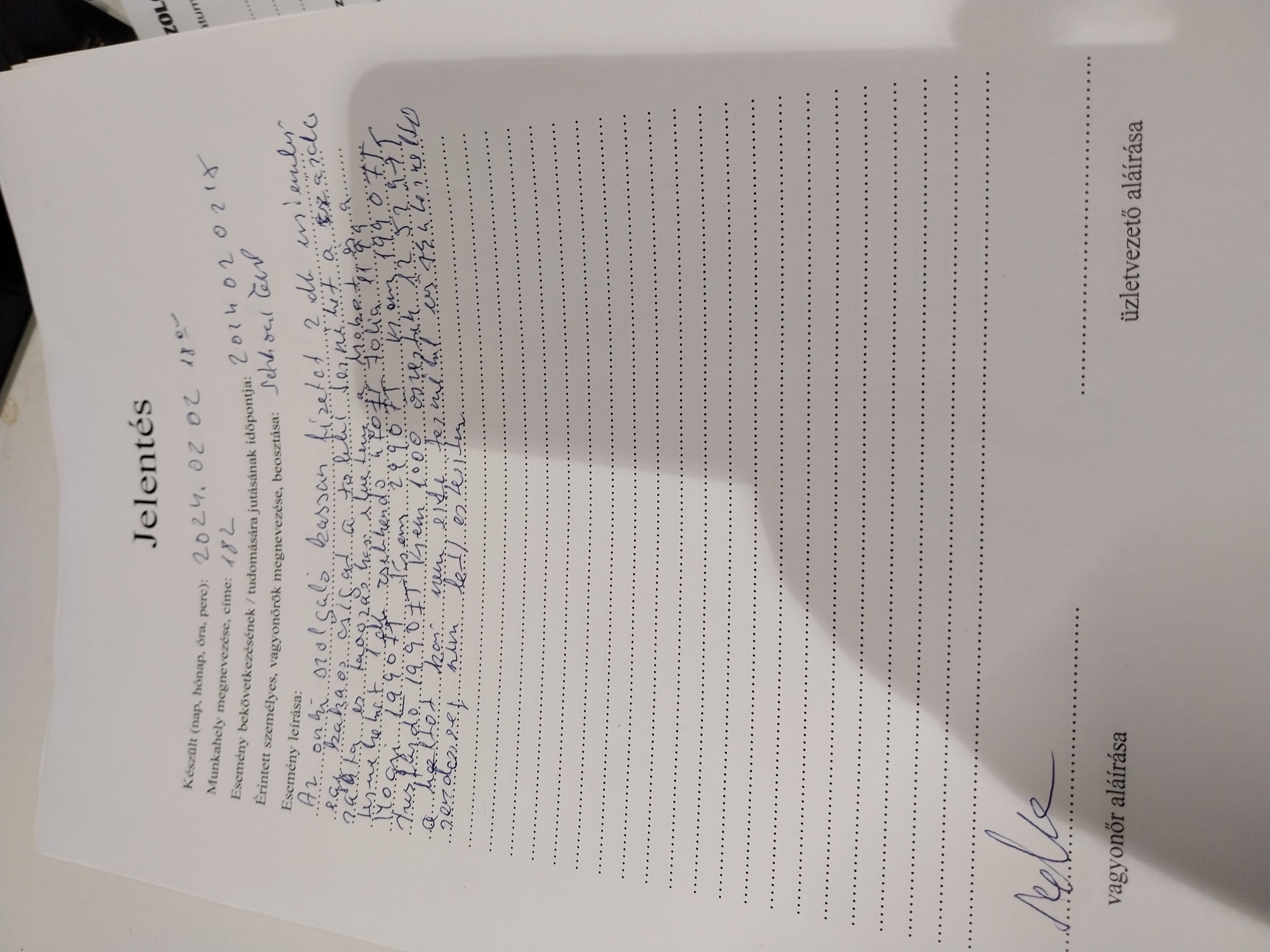 | Munkáltatói igazolvány megléte, látható viselete | Helyszínen javított hiba |