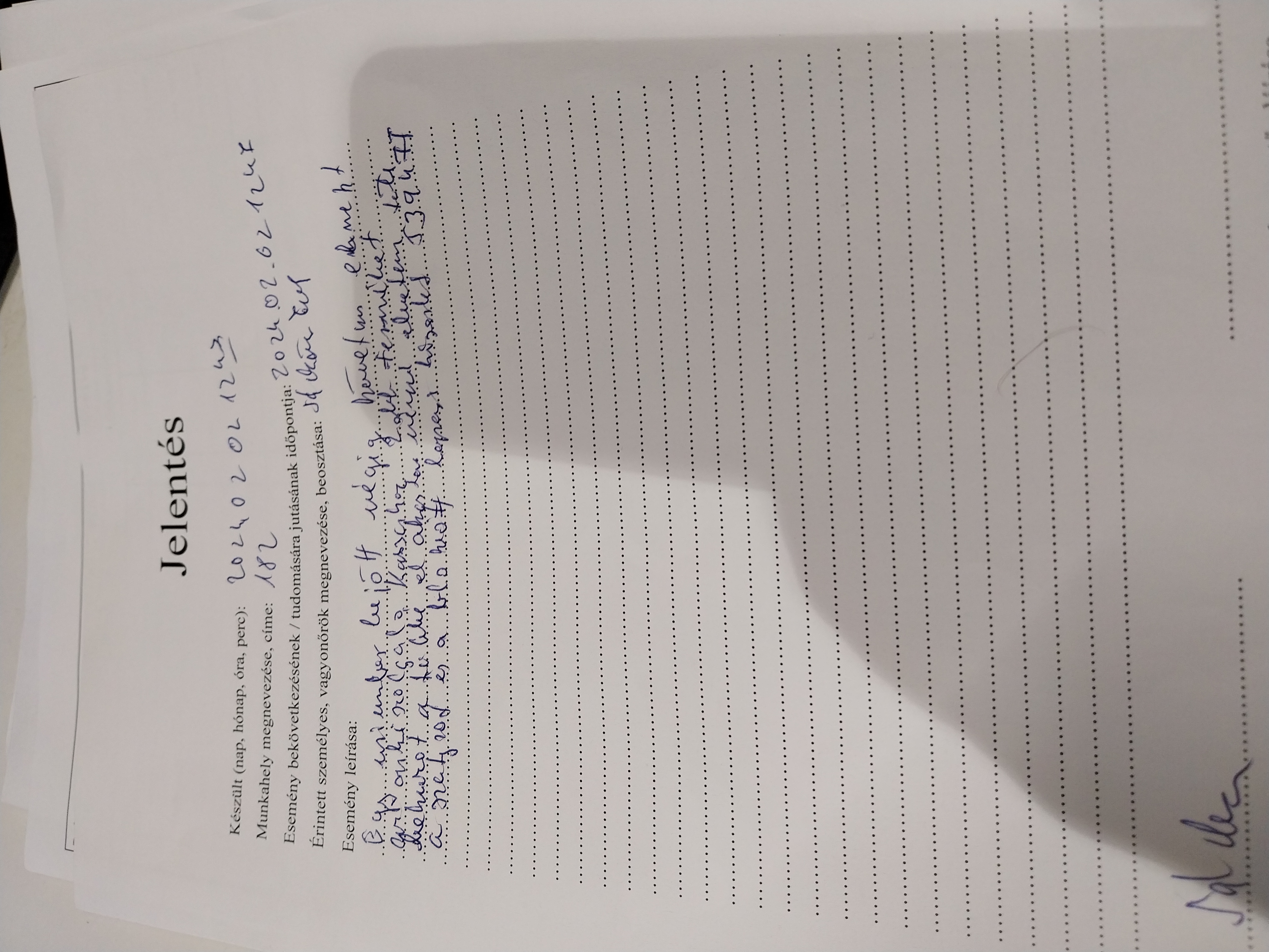 | Alkoholszondás ellenőrzés történt? | Nem |