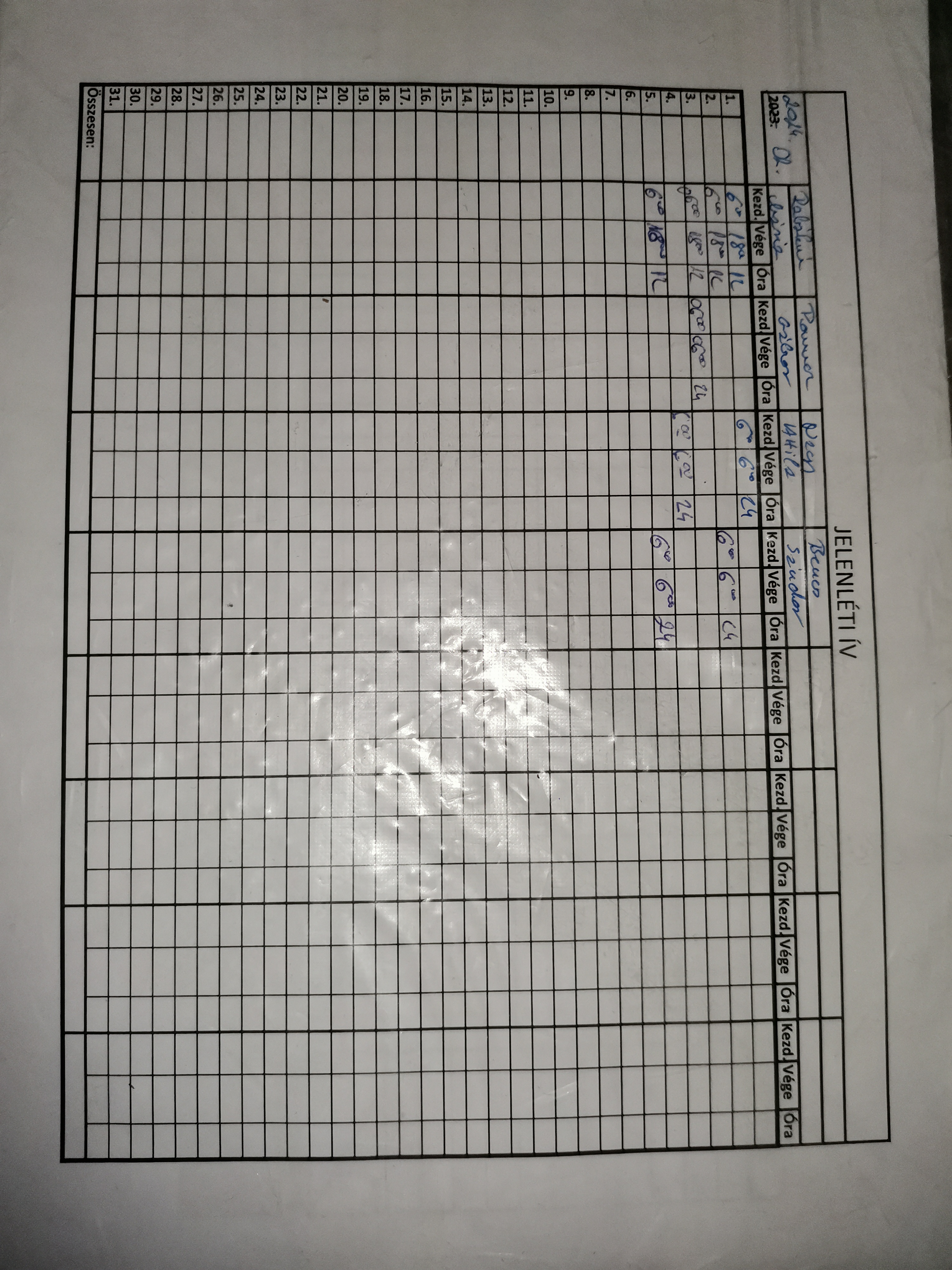 | A munkaidő nyilvántartás (jelenléti ív) vezetése | Megfelel |