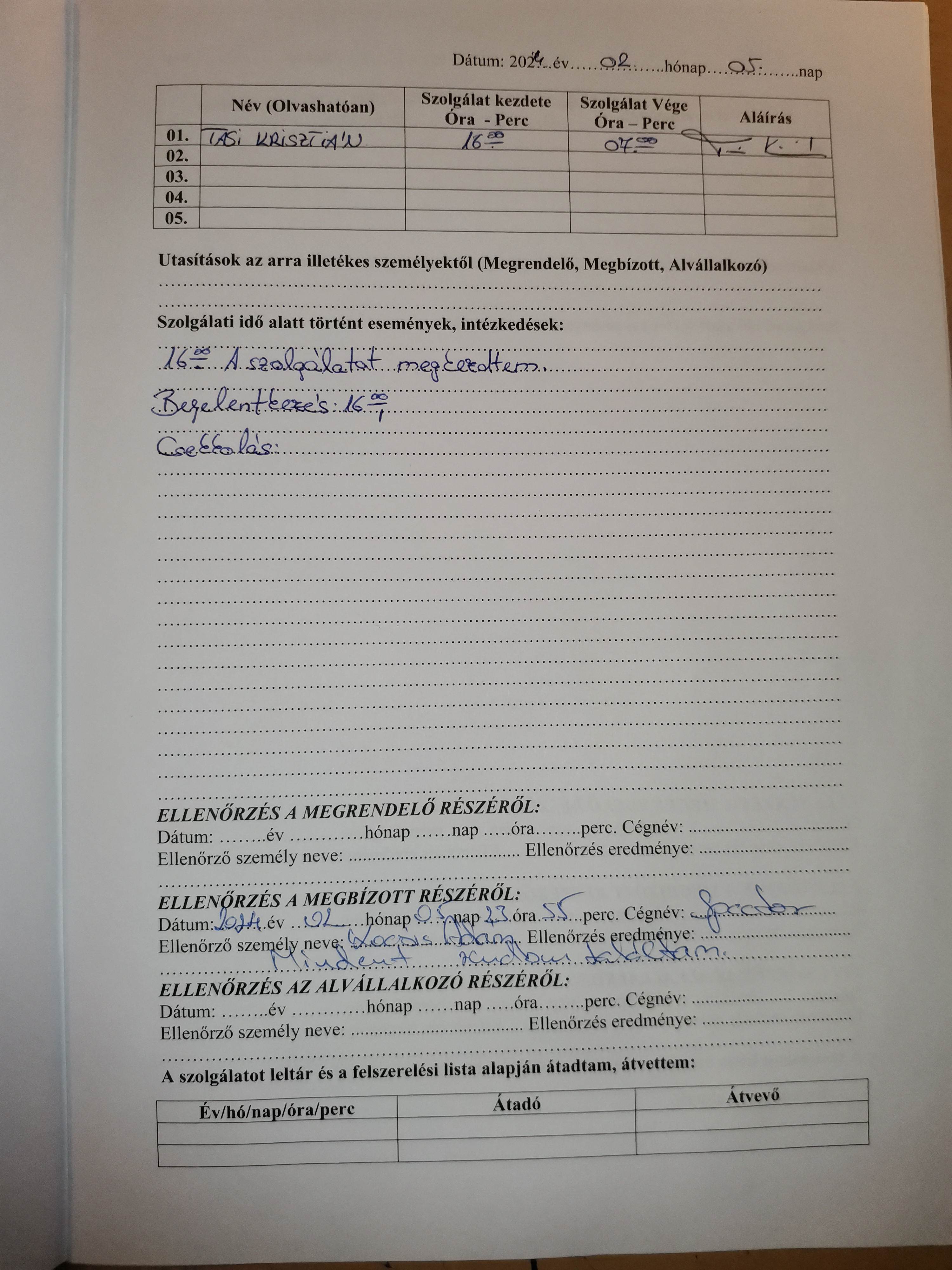 | Az ellenőrzött személy neve | Tasi Krisztián |