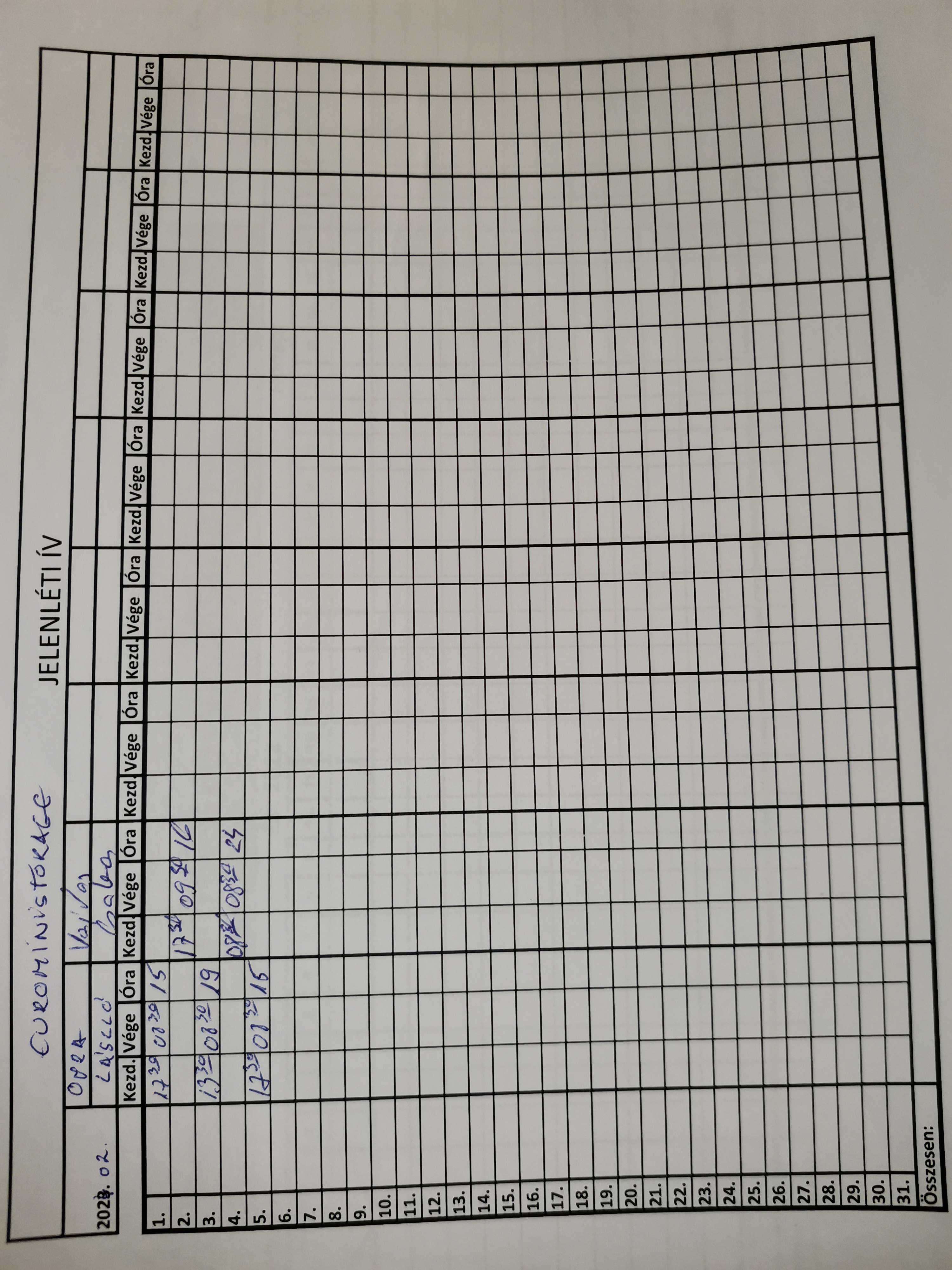 | A munkaidő nyilvántartás (jelenléti ív) vezetése | Megfelel |