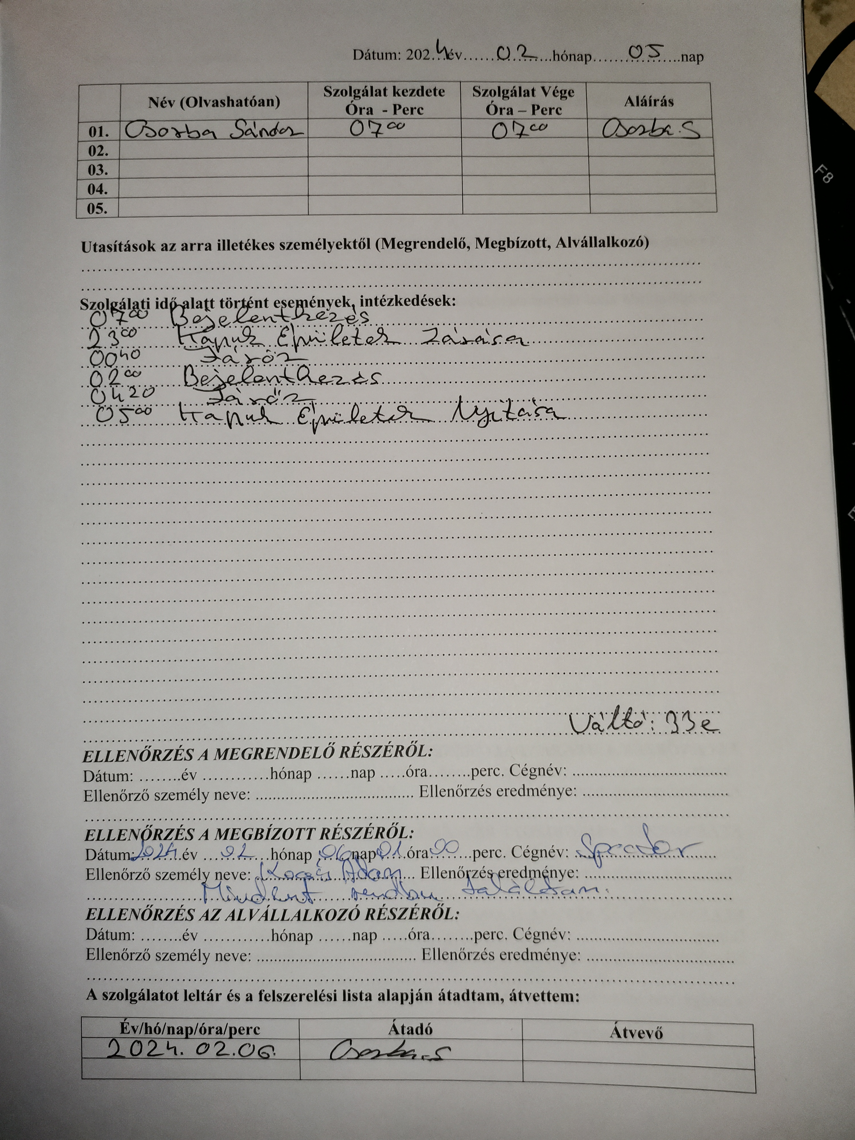 | Az ellenőrzött személy neve | Csorba Sándor |