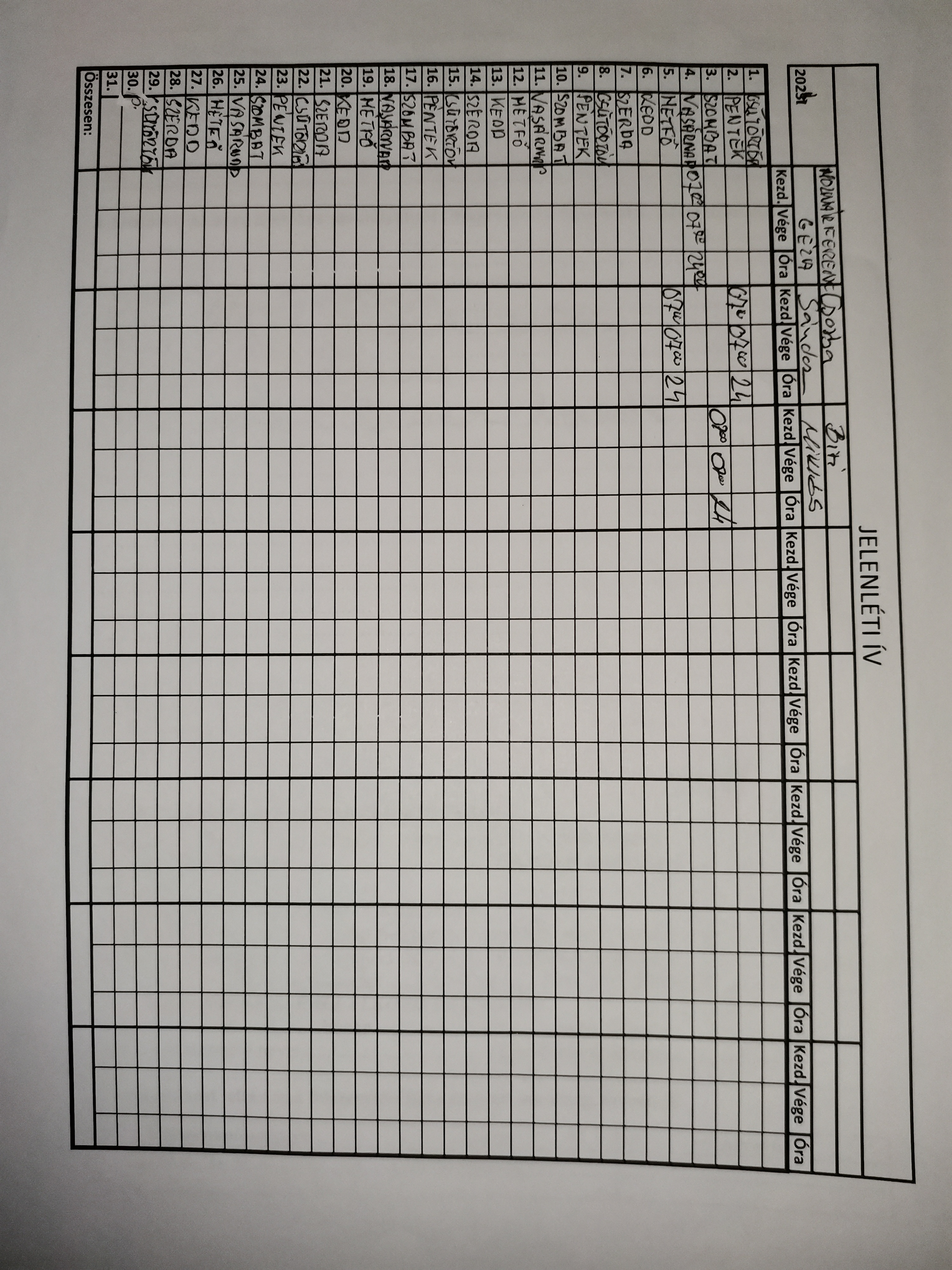 | A munkaidő nyilvántartás (jelenléti ív) vezetése | Megfelel |