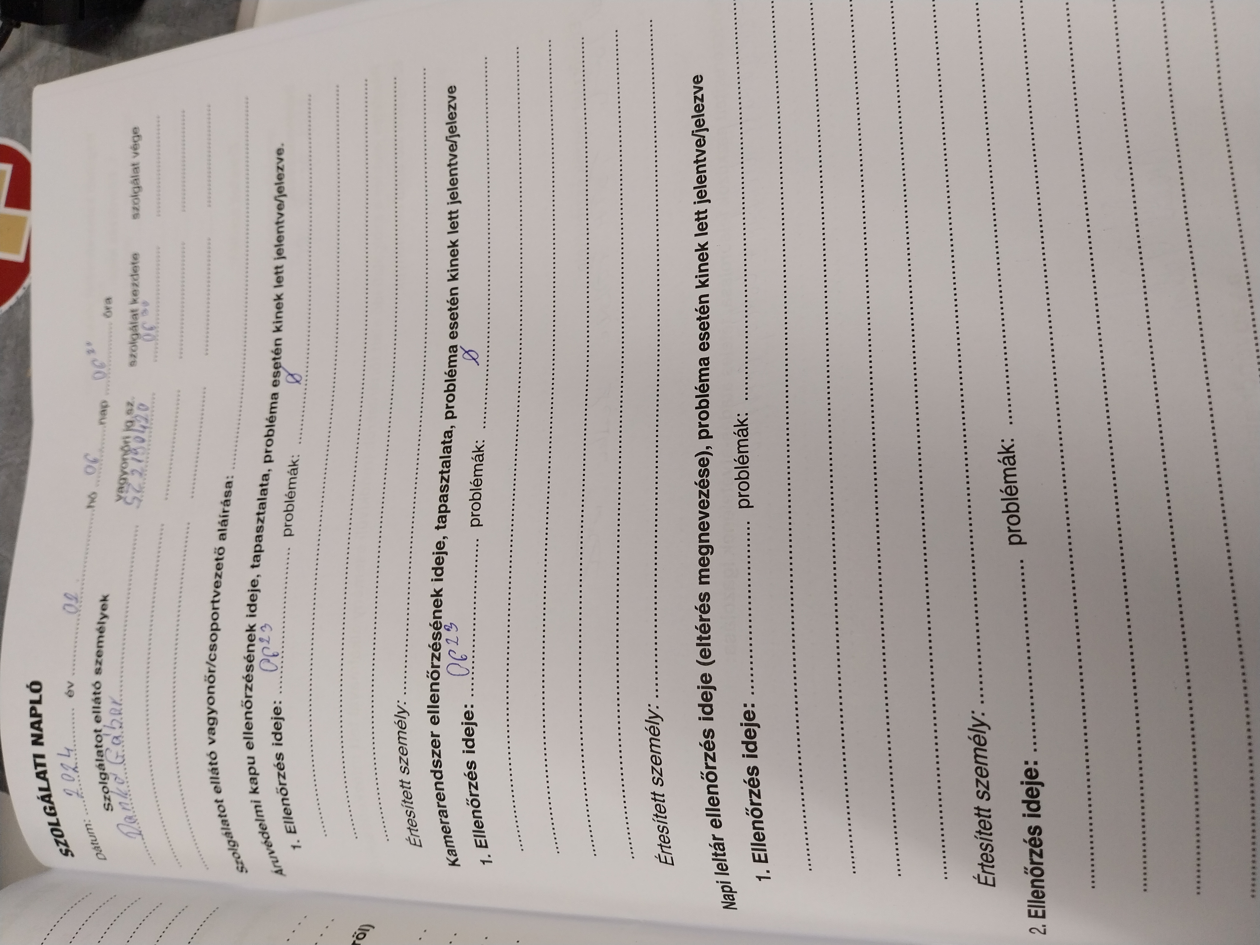 | Az ellenőrzött személy neve | Dankó Gábor sz2190420 |