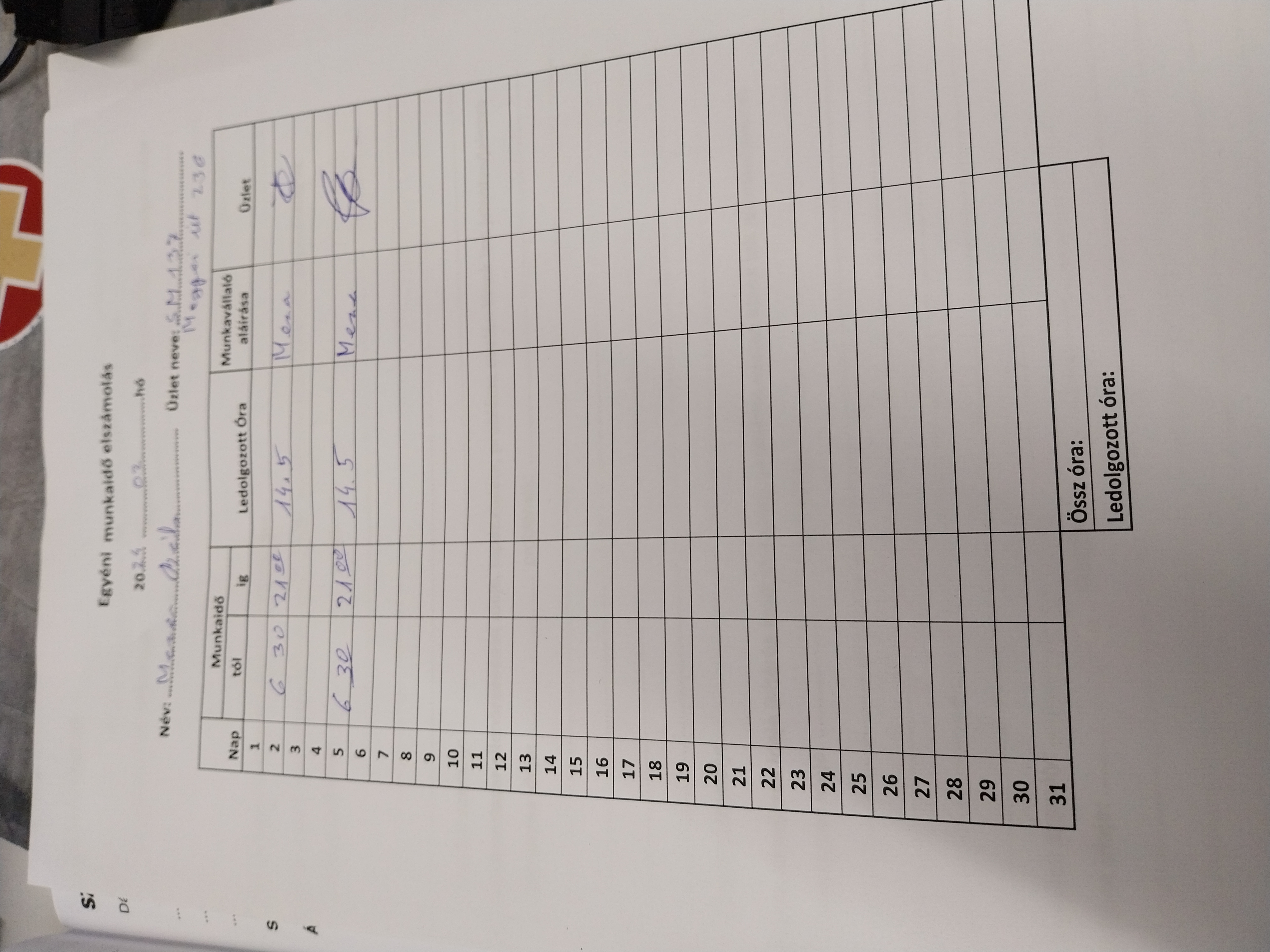 | A munkaidő nyilvántartás (jelenléti ív) vezetése | Megfelel |