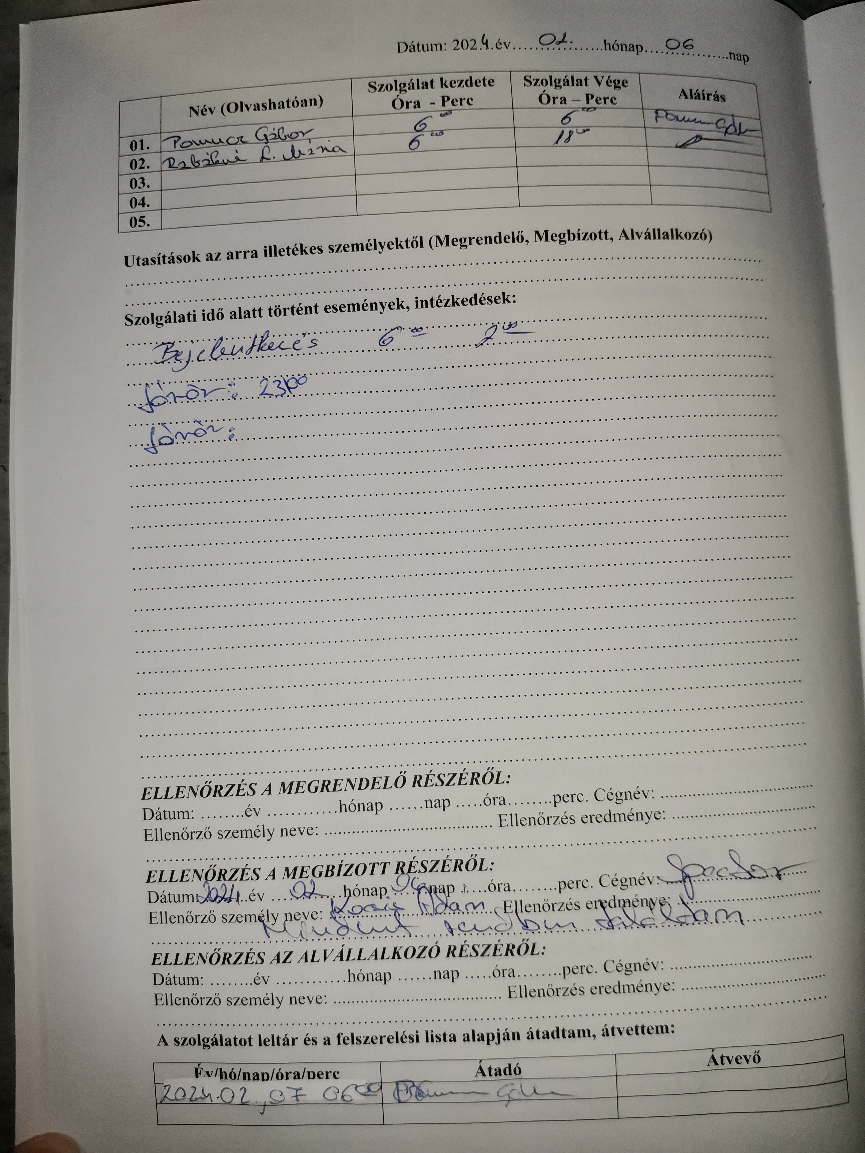 | Van-e az ellenőrzött személynek egyéb észrevétele, javaslata? | Nem |