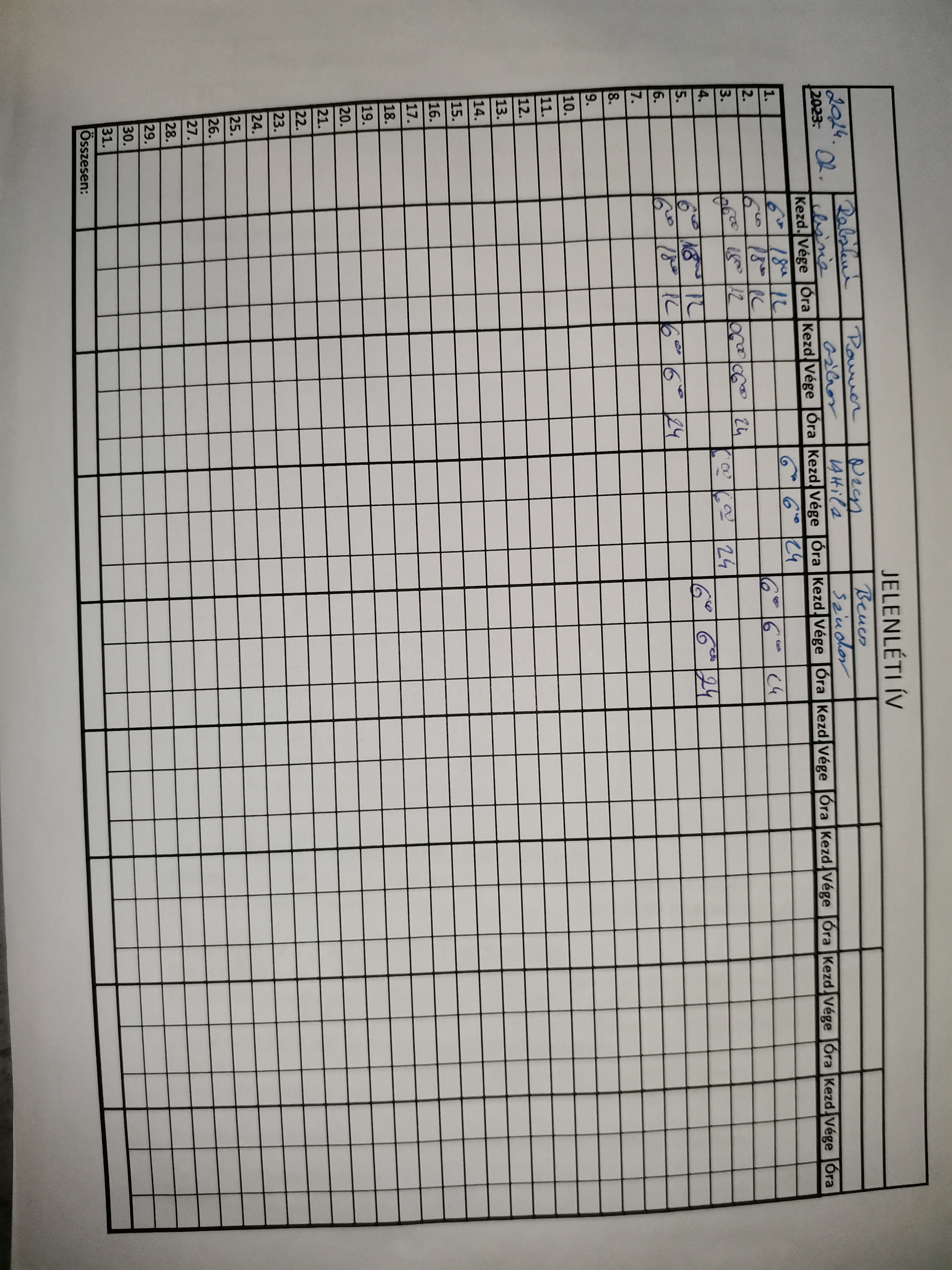 | A munkaidő nyilvántartás (jelenléti ív) vezetése | Megfelel |