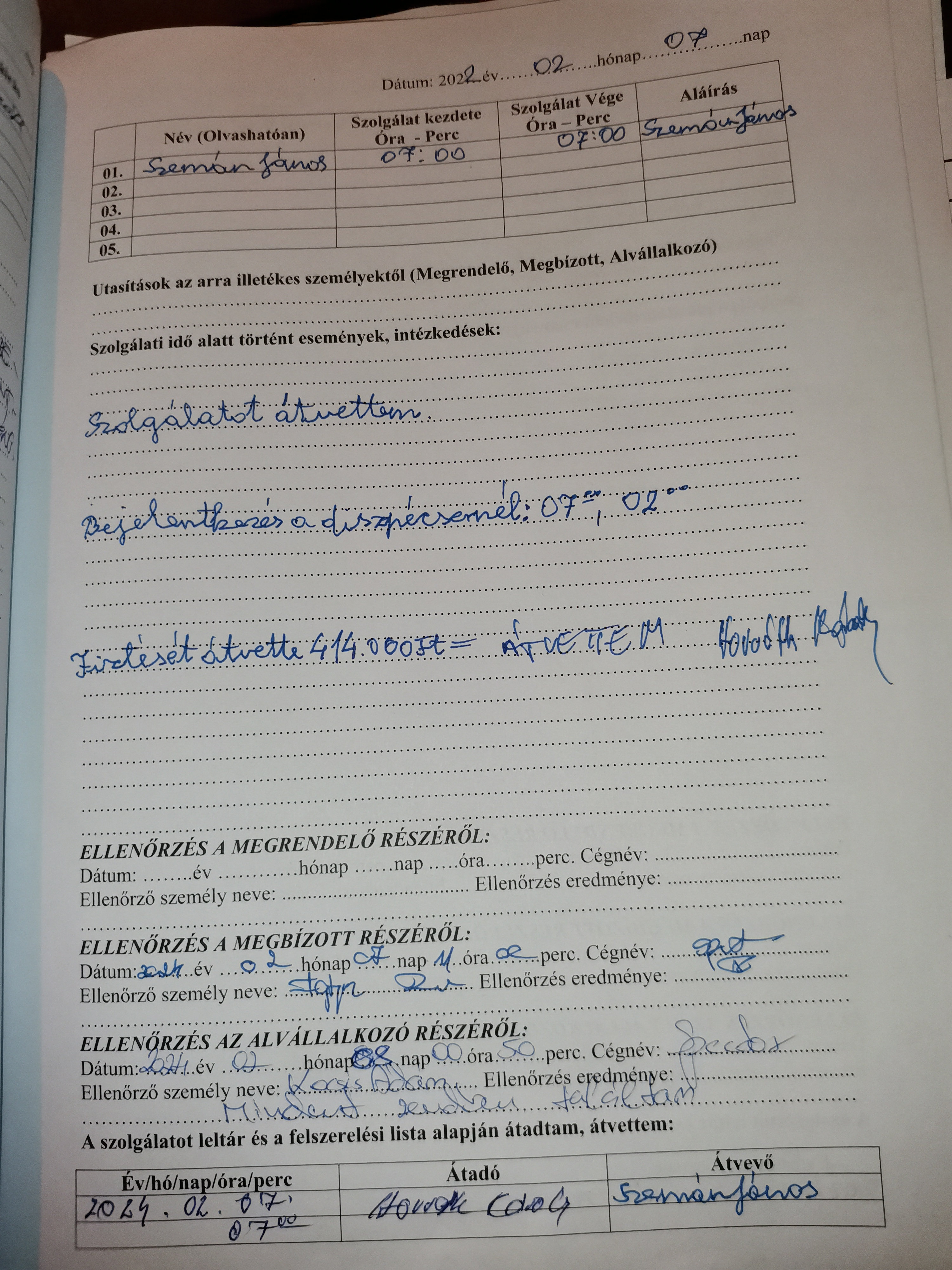 | Van-e az ellenőrzött személynek egyéb észrevétele, javaslata? | Nem |