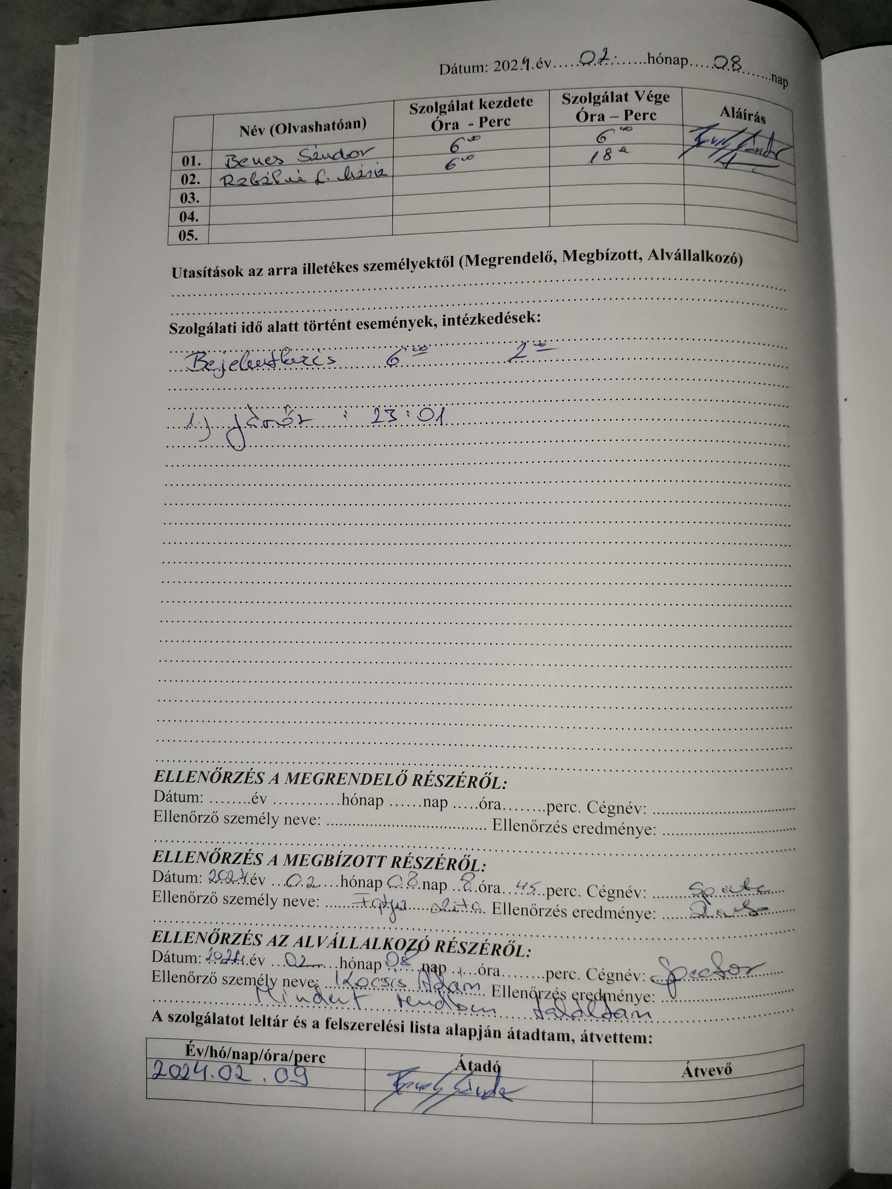 | Az őrhelyre kötelezően előírt oktatások igazolásának megléte | Nem releváns |