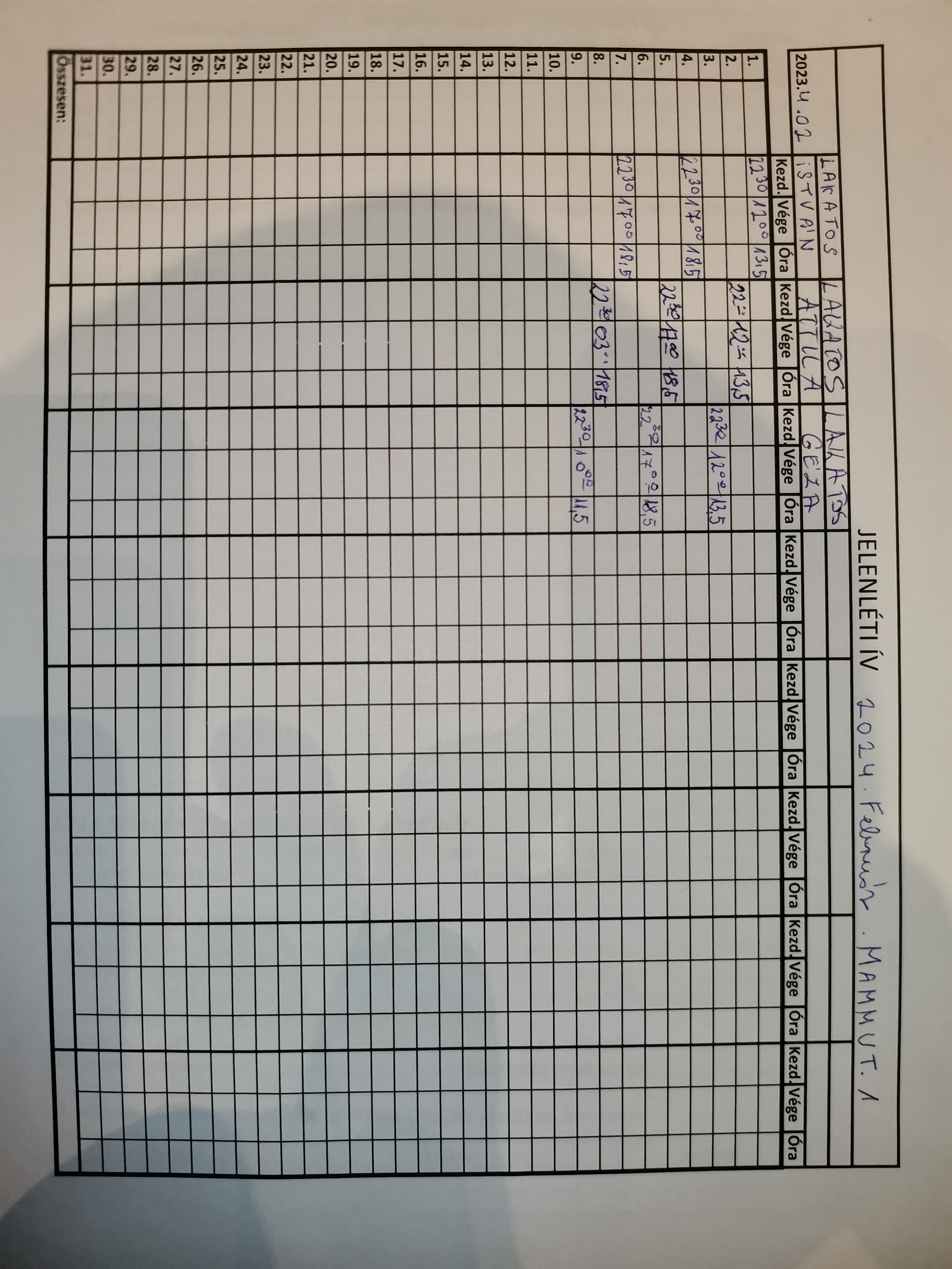 | A munkaidő nyilvántartás (jelenléti ív) vezetése | Megfelel |