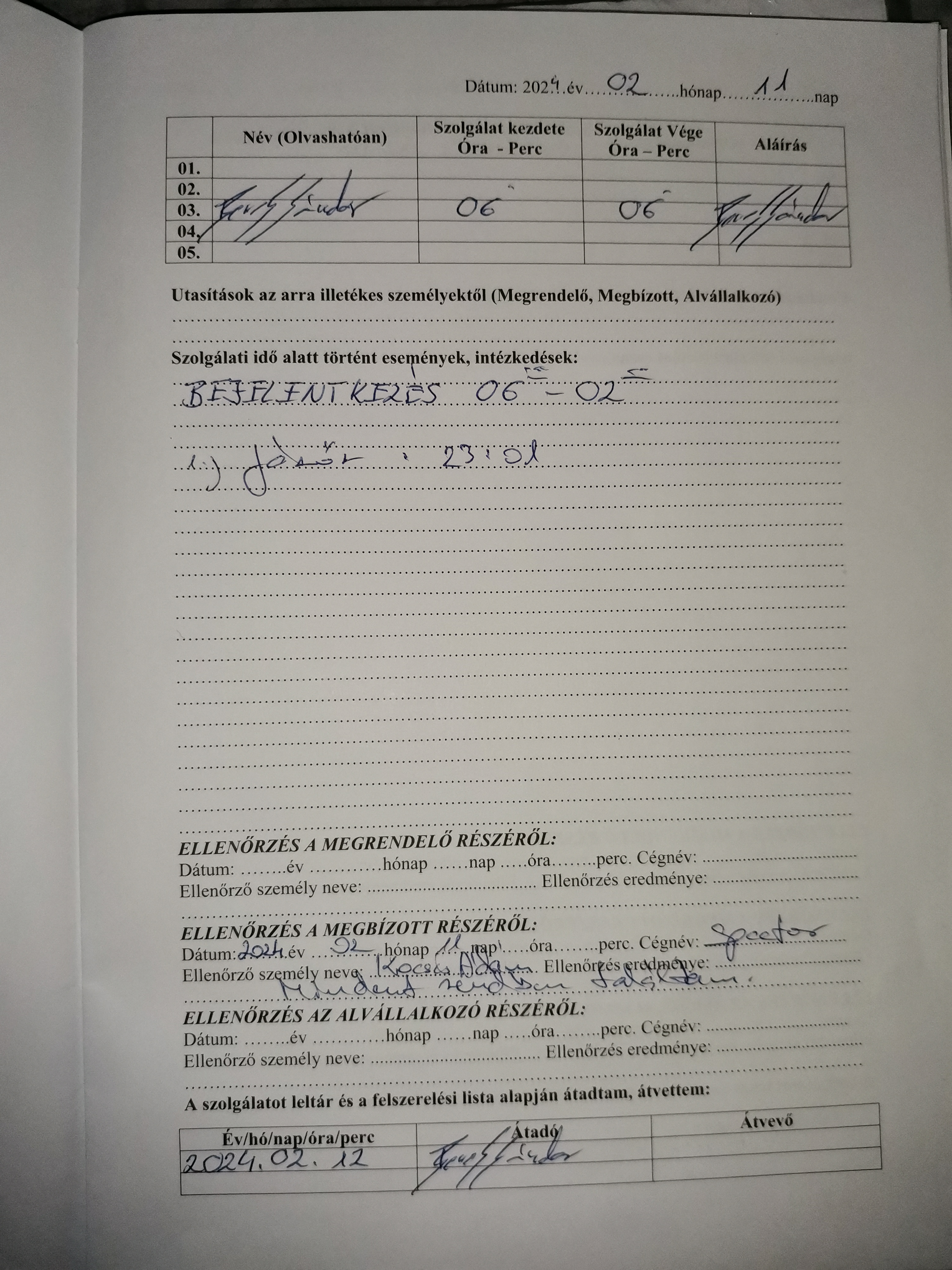 | Az őrhelyre kötelezően előírt oktatások igazolásának megléte | Megfelel |