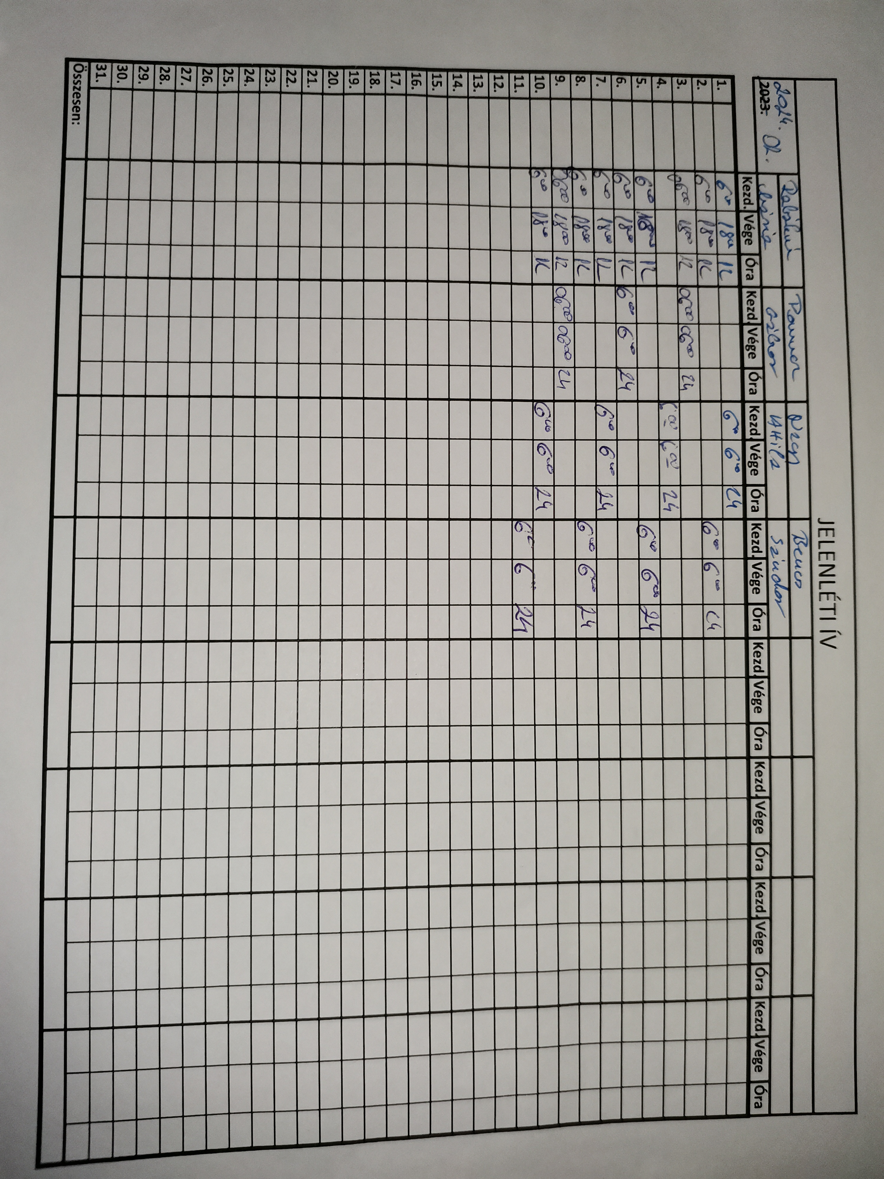 | A munkaidő nyilvántartás (jelenléti ív) vezetése | Megfelel |