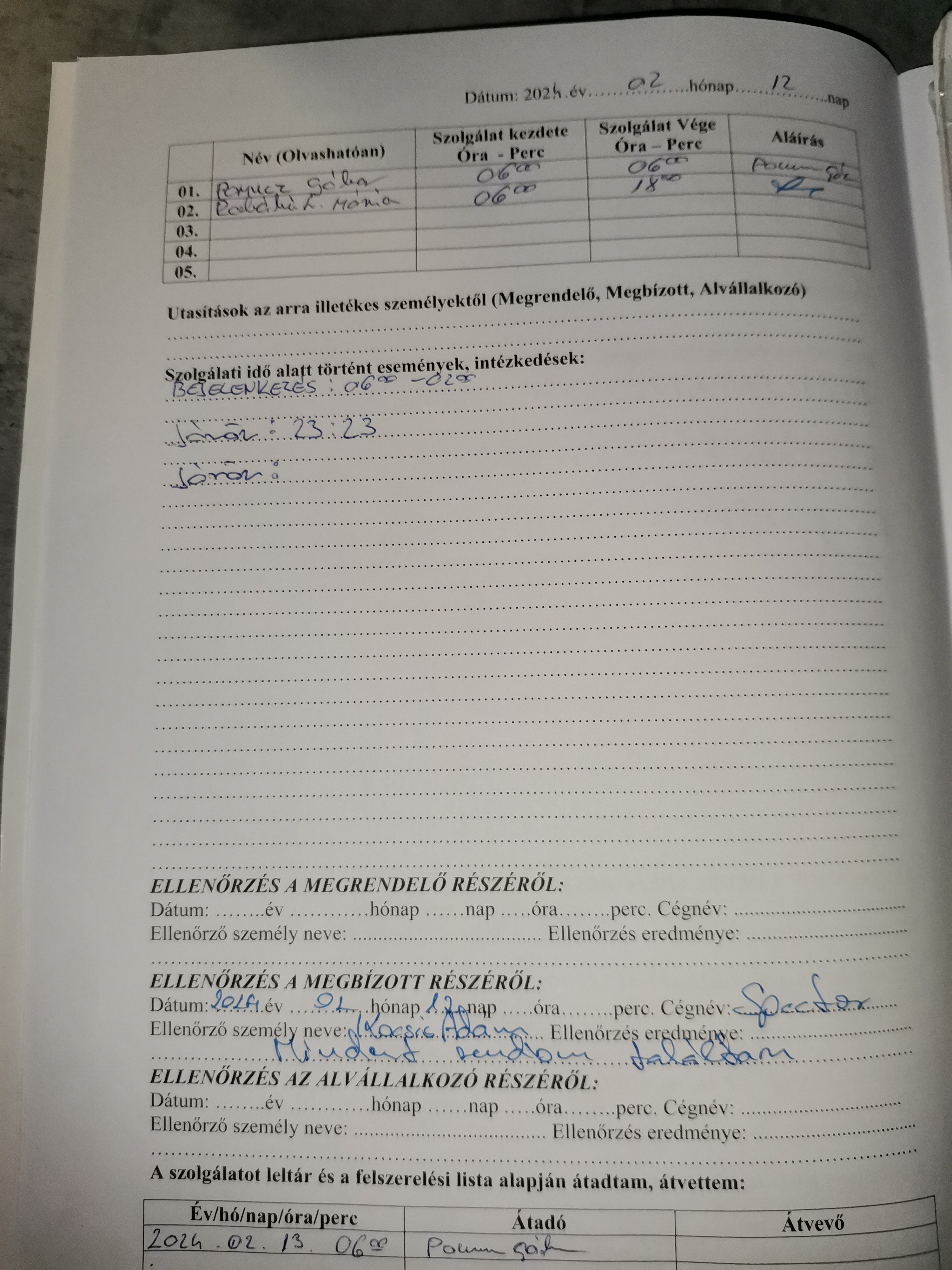 | Van-e az ellenőrzött személynek egyéb észrevétele, javaslata? | Nem |