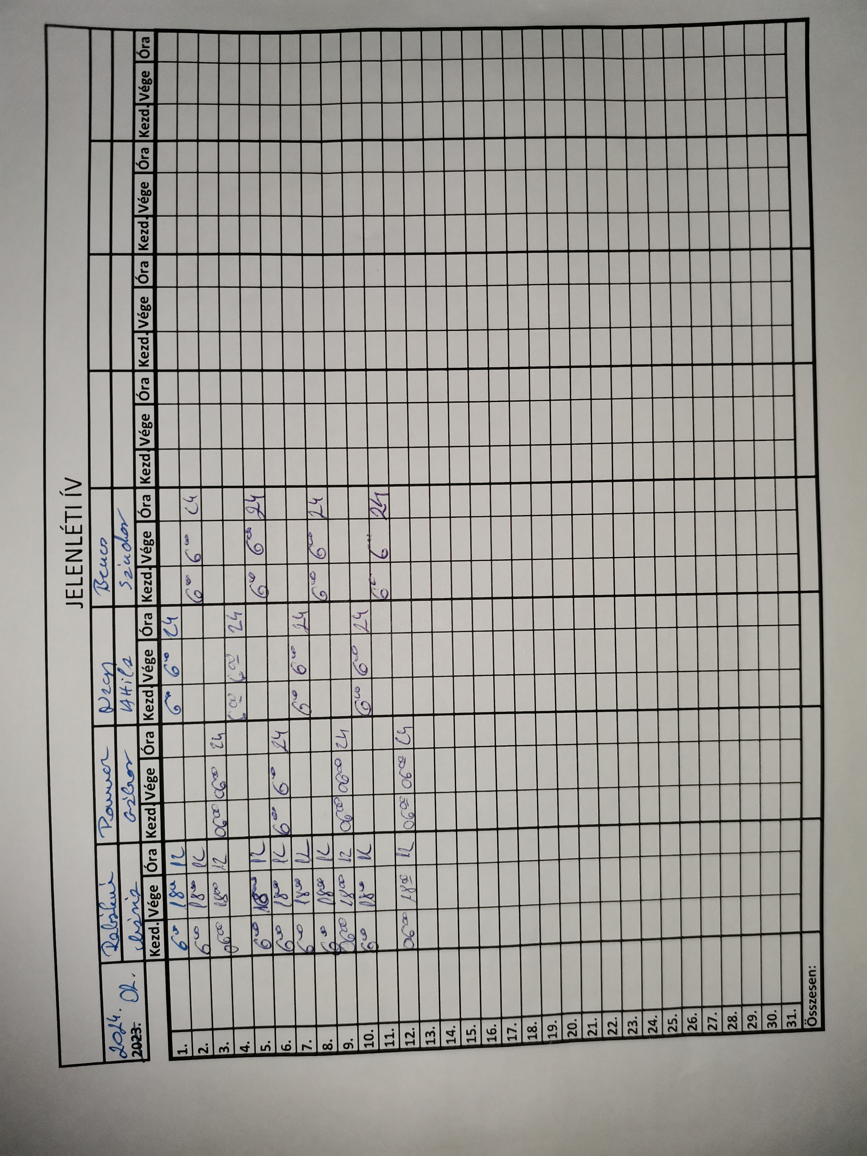 | A munkaidő nyilvántartás (jelenléti ív) vezetése | Megfelel |