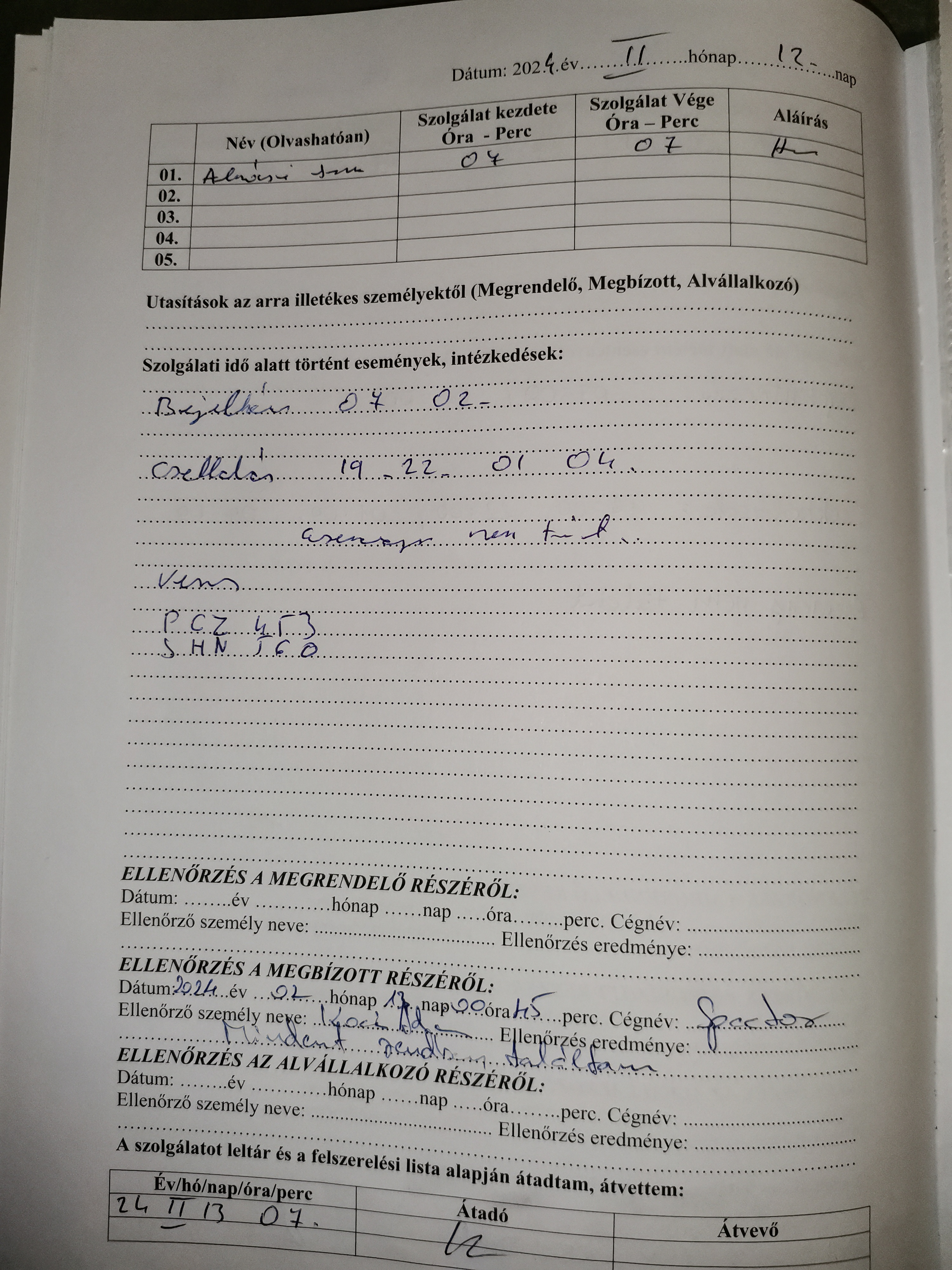 | Az őrzési helyre kiadott munkaeszközök megléte | Nem releváns |