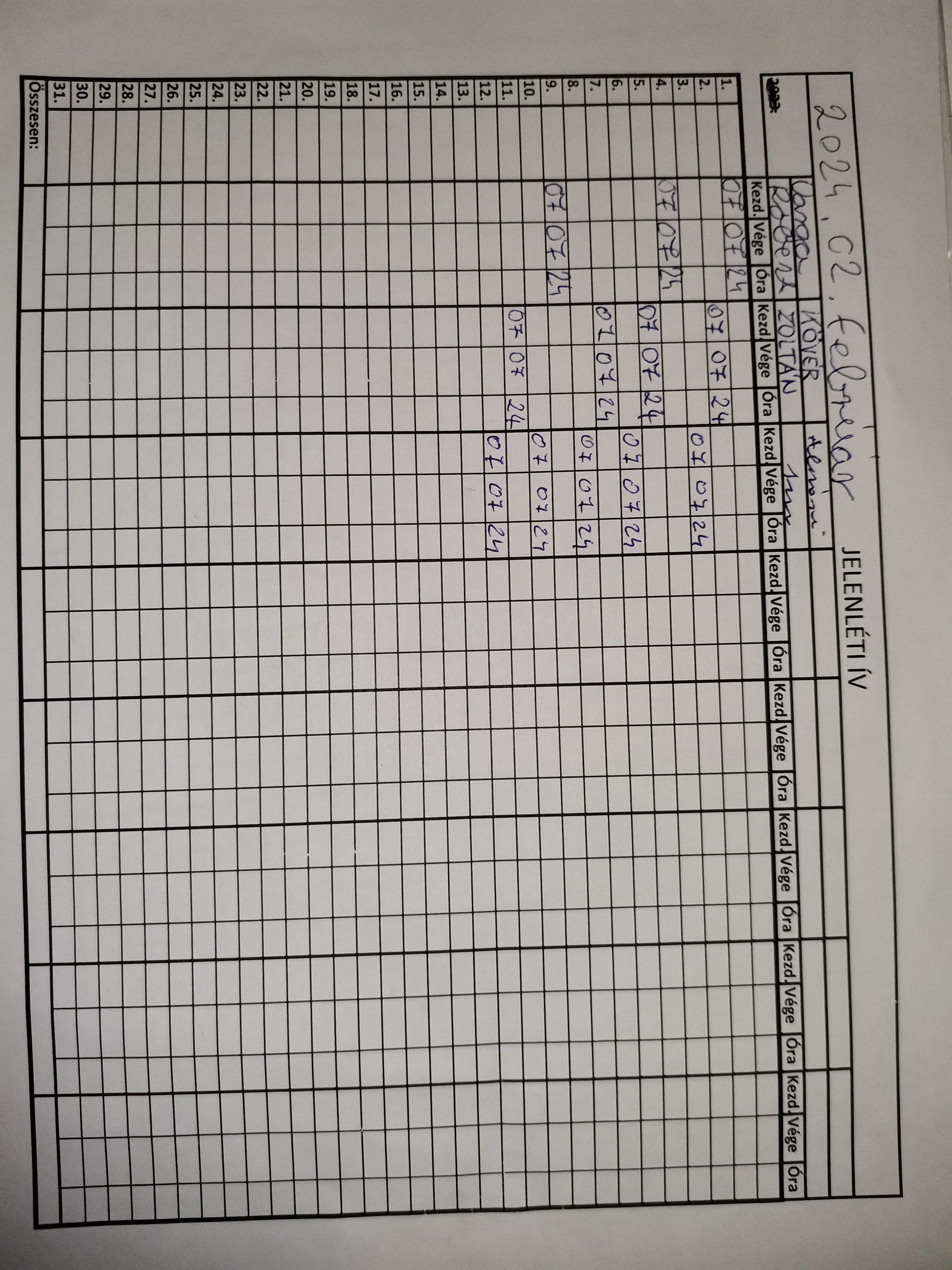 | A munkaidő nyilvántartás (jelenléti ív) vezetése | Megfelel |