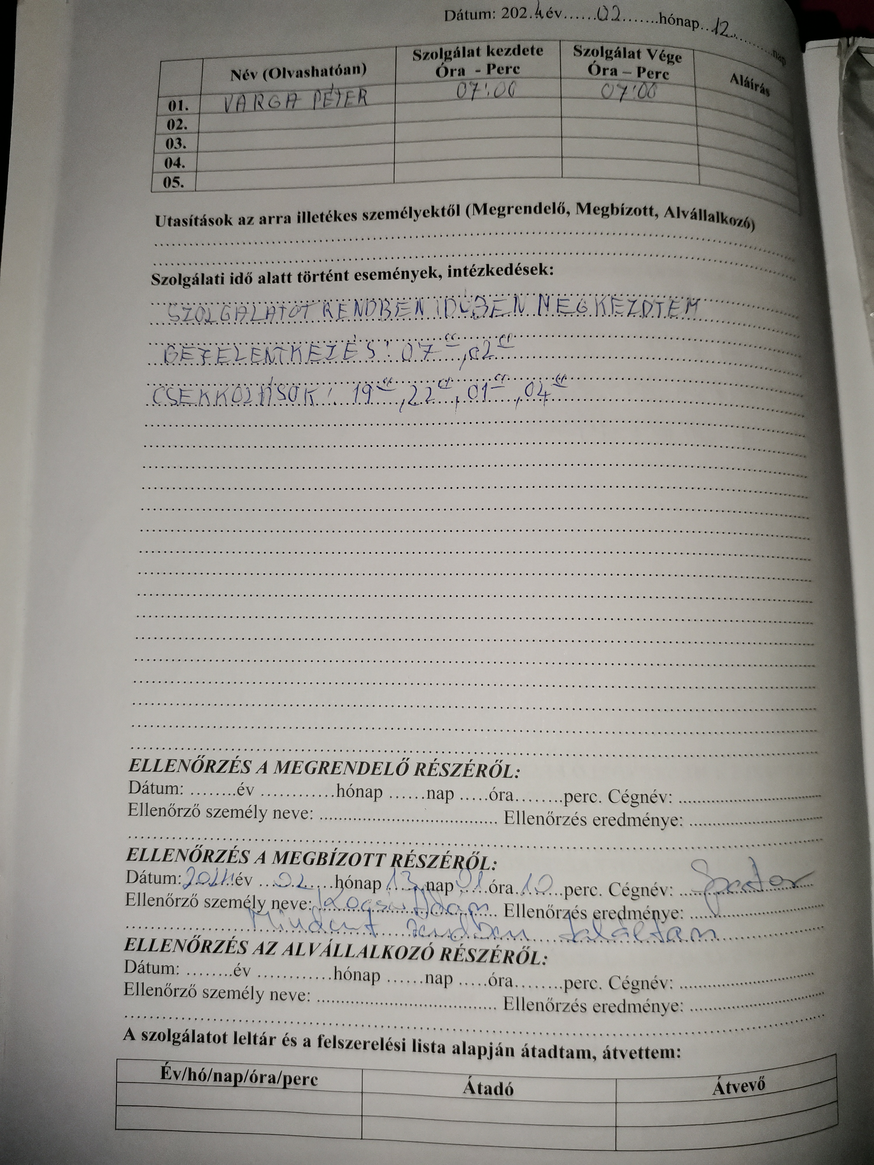 | Az őrhelyre kötelezően előírt oktatások igazolásának megléte | Megfelel |